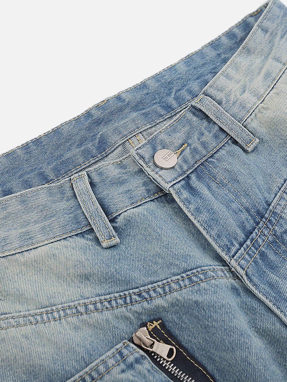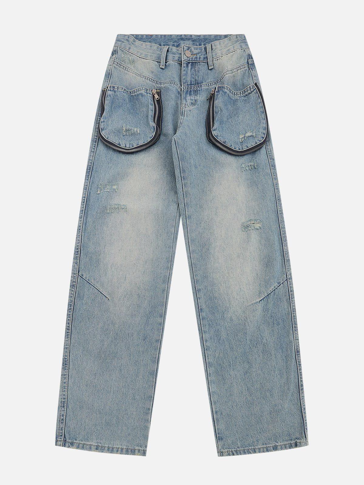Defy the ordinary with these edgy blue denim jeans that effortlessly blend utility and style. The rugged texture and distressed detailing bring a bold twist to classic streetwear fashion, while oversized zipper pockets add a unique, functional flair. Designed in a relaxed fit with a one-size option, these jeans offer comfort without compromising on urban edge. Perfect for curating y2k outfit inspo, pair them with your favorite graphic tee or hoodie for a look that speaks volumes. Dive into the world of fearless fashion and redefine your wardrobe essentials today.
