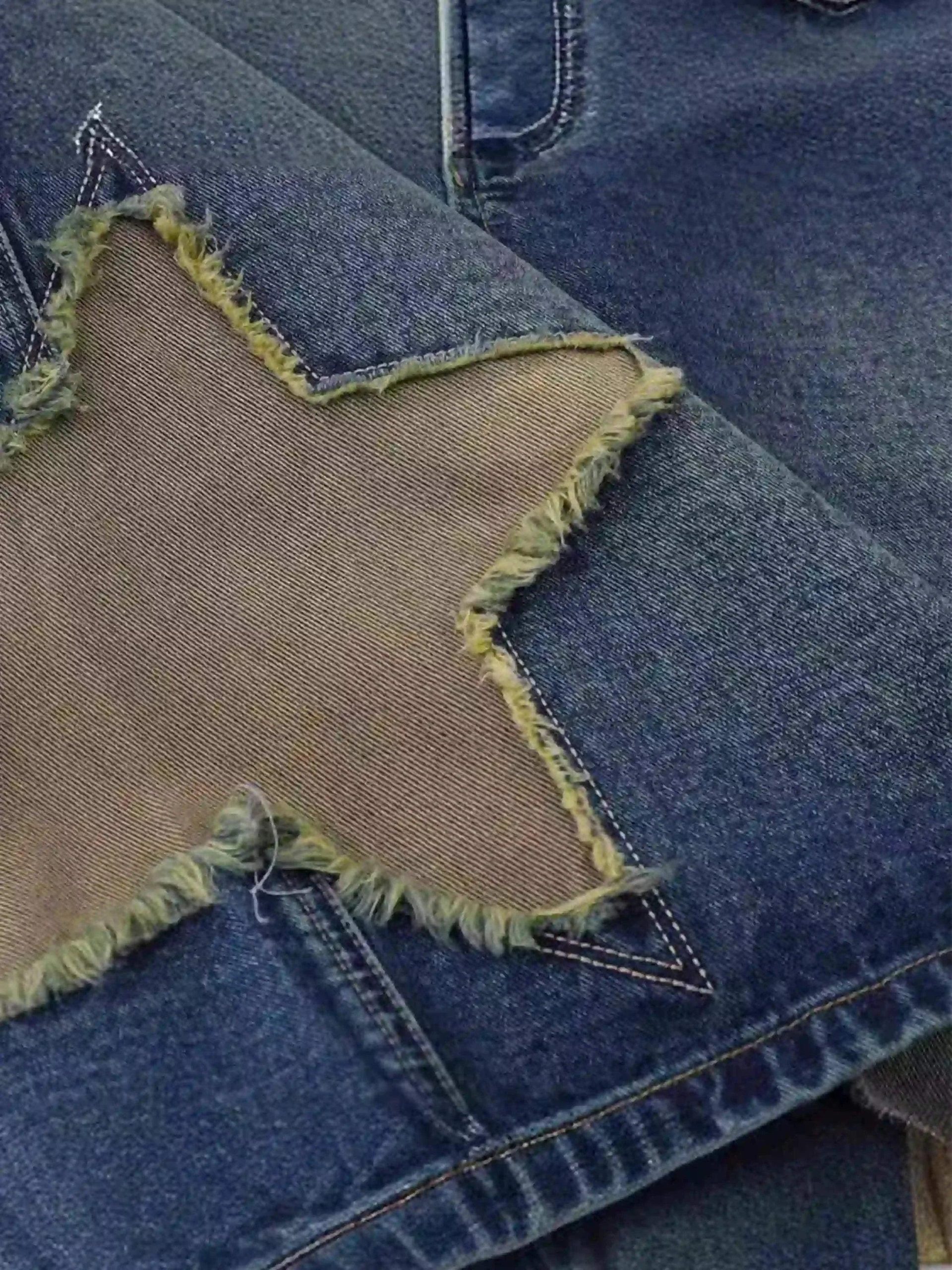 These denim shorts redefine urban cool with their bold star patches and edgy frayed edges, offering a fresh spin on summer fashion inspo. The deep blue hue complements any streetwear look, while the relaxed fit provides the ultimate comfort in sizes ranging from S to XXL. Perfect for those who dare to stand out, these shorts pair effortlessly with a graphic tee or hoodie, making them a versatile addition to your summer outfit rotation. Grab yours and step into the season with confidence.