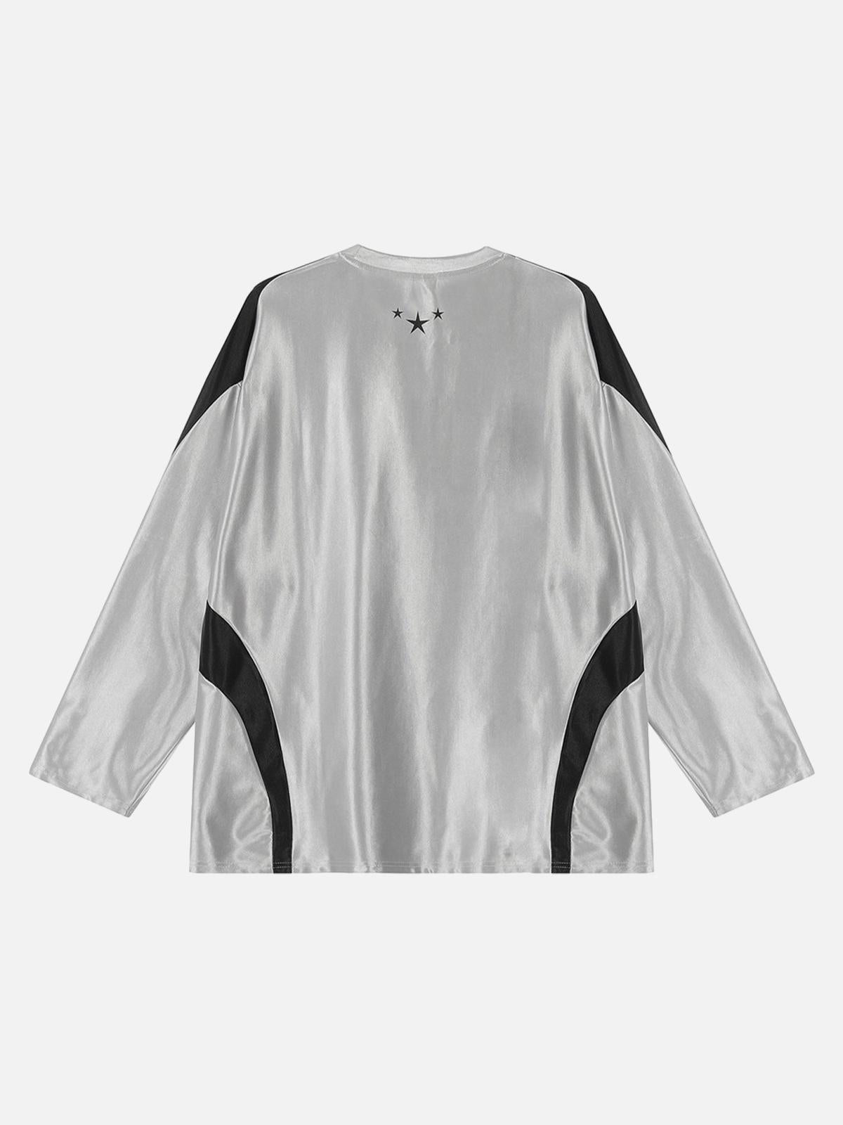 Dive into the heart of streetwear with a top that screams urban prowess. This bold silver piece, with its sleek black accents, commands the scene with unapologetic confidence. The smooth texture and relaxed fit make it ideal for those seeking a standout summer outfit, blending effortlessly into any wardrobe. Whether you’re hitting the pavement or catching a late-night vibe, this top in M, L, and XL sizes offers versatility and edge. Pair it with your favorite sneakers for a look that’s undeniably lit. Own the street and let your style speak volumes.