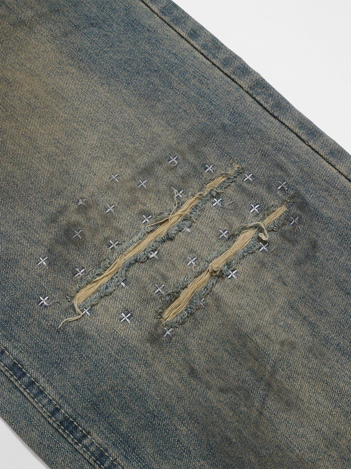 Embrace the raw edge of urban style with these distressed jeans that redefine streetwear fashion. Featuring a bold, relaxed fit and authentic worn-in textures, these jeans deliver a vintage vibe with a modern twist. The rugged detailing and faded blue hue create an effortlessly cool look, while the versatile one-size design ensures a comfortable fit for every adventure. Pair them with your favorite sneakers for an outfit that’s as dynamic as you are. Step up your Y2K outfit game and let your style speak volumes.