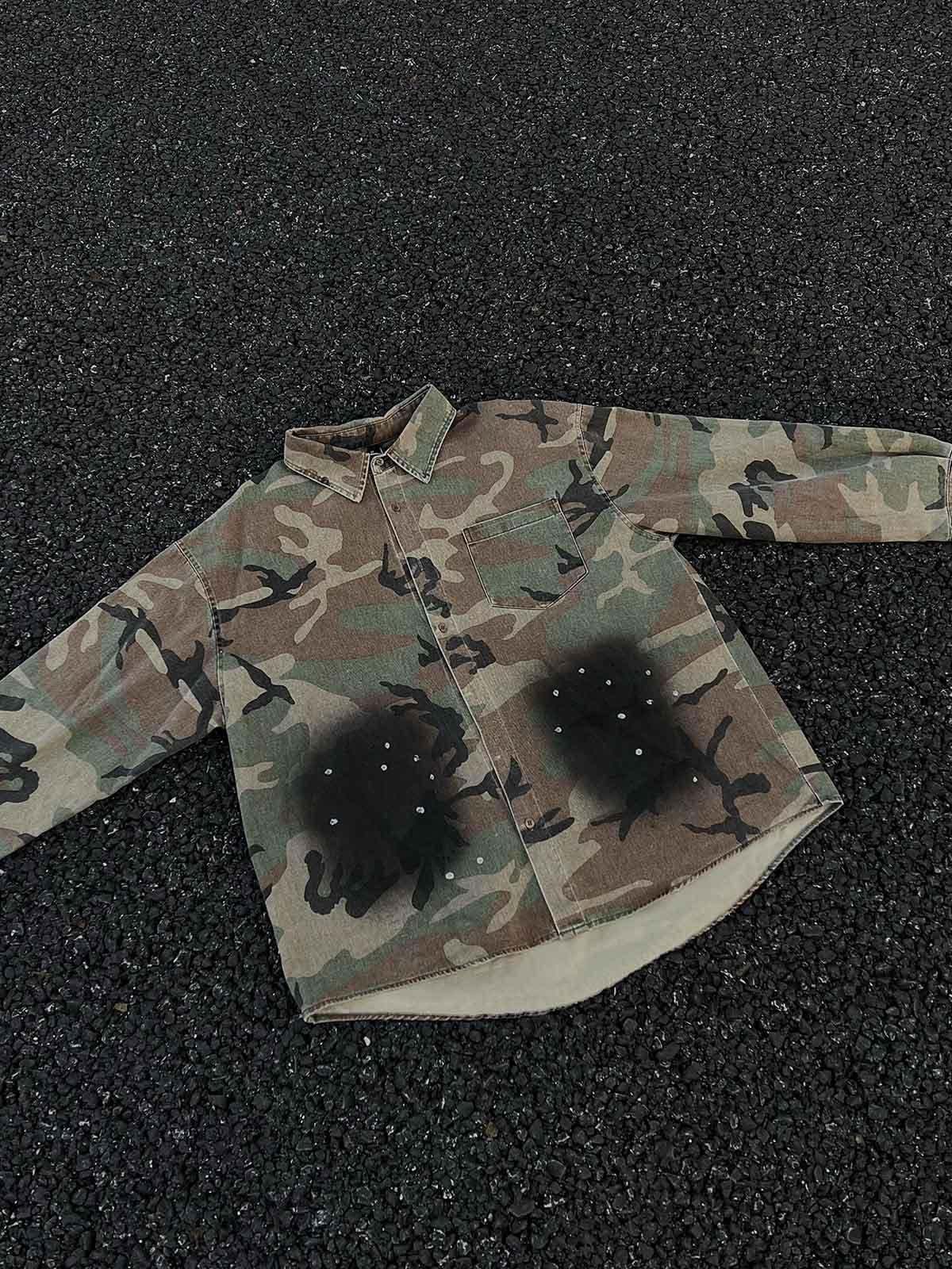Stylish Concert Outfit: Camouflage Washed Denim Shirt for Your Next Event High-quality product featuring concert outfit ideas, country concert outfit, outfit inspo and more. Modern design that fits the latest trends. Premium materials ensure durability and comfort. Order now for special offers! Product designed with attention to every detail. Suitable for all occasions and personal styles.