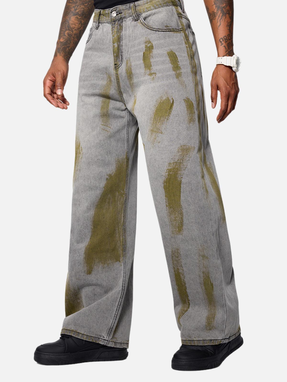 Embrace the artful clash of style and rebellion with these striking pants, where urban grit meets avant-garde flair. The bold strokes of olive on a gray canvas create a raw, dynamic texture that stands out in the streetwear fashion scene. Designed in a relaxed, one-size fit, these pants offer a comfortable yet edgy vibe, perfect for those chasing the ultimate y2k outfits. Whether you’re heading to a gallery opening or just owning the sidewalk, pair them with a sleek black tee for effortless outfit inspo. Slip into these head-turners and redefine your wardrobe.