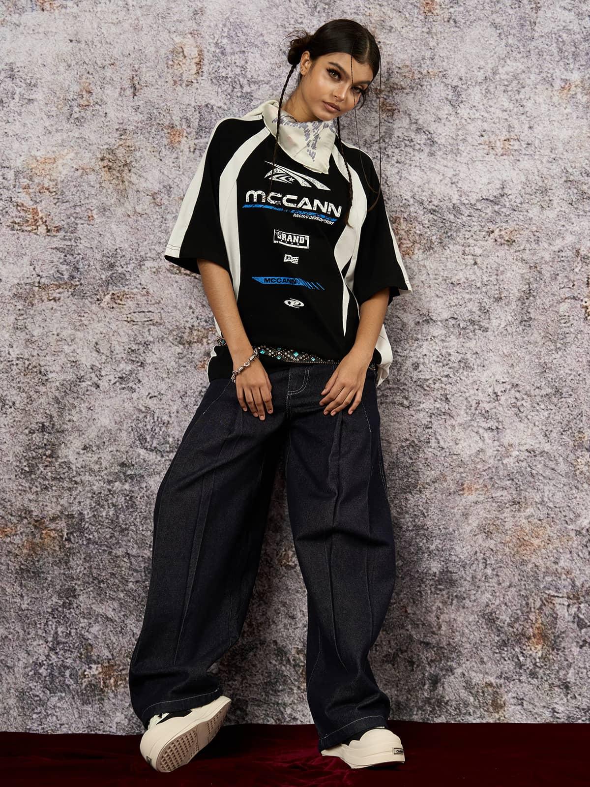Turn heads with this bold, graphic tee that screams urban confidence and modern flair. The striking black canvas is electrified with dynamic white panels and bold typography, creating a vivid contrast that embodies the essence of streetwear. The sleek, relaxed fit offers comfort for any scene, whether you’re navigating city streets or chilling with friends. Available in versatile sizes from M to 2XL, this piece is perfect for mixing and matching in your summer fashion rotation. Pair it with distressed jeans or cargo shorts for an effortlessly cool vibe. Dive into your summer style with this standout piece today.