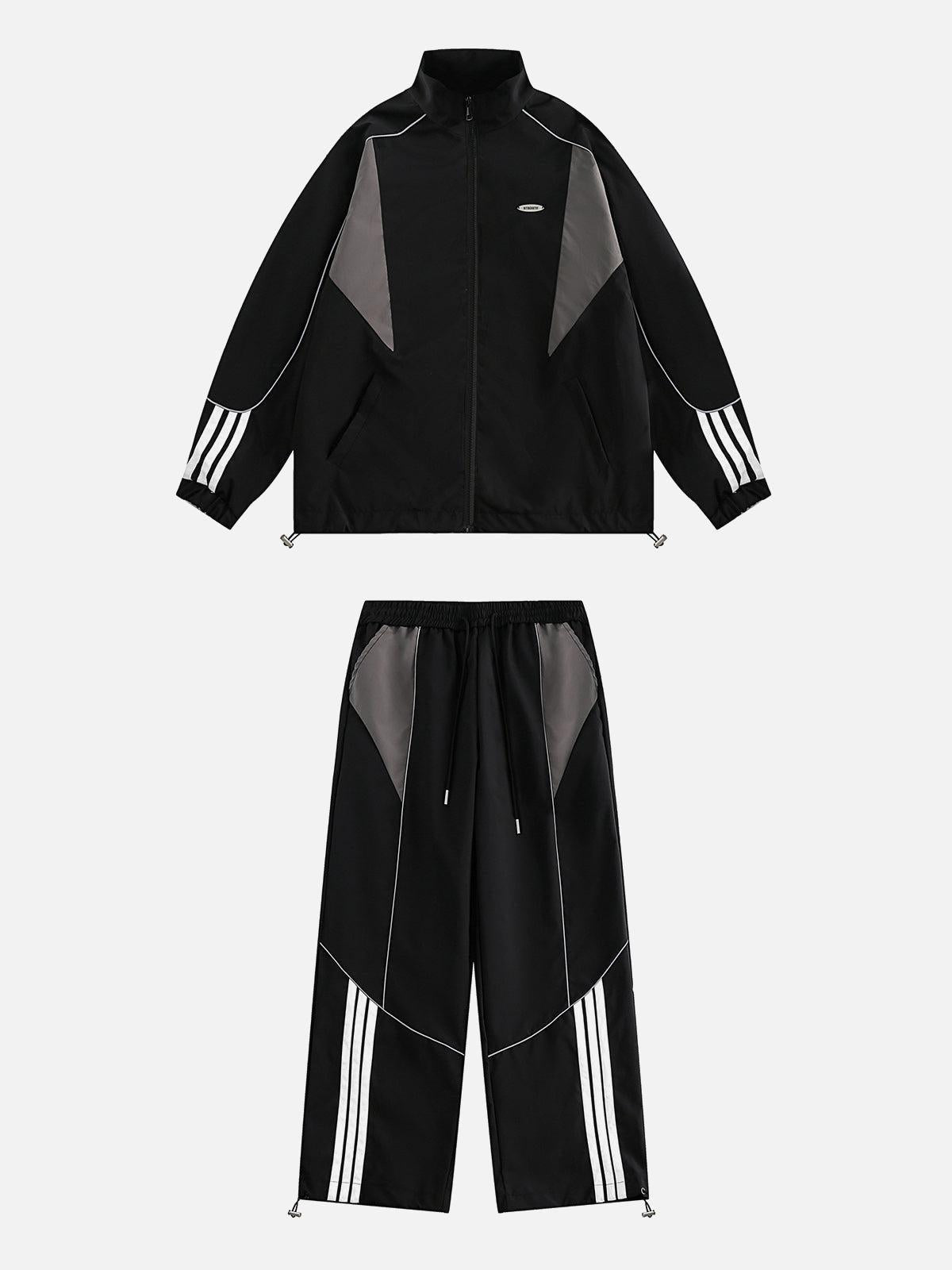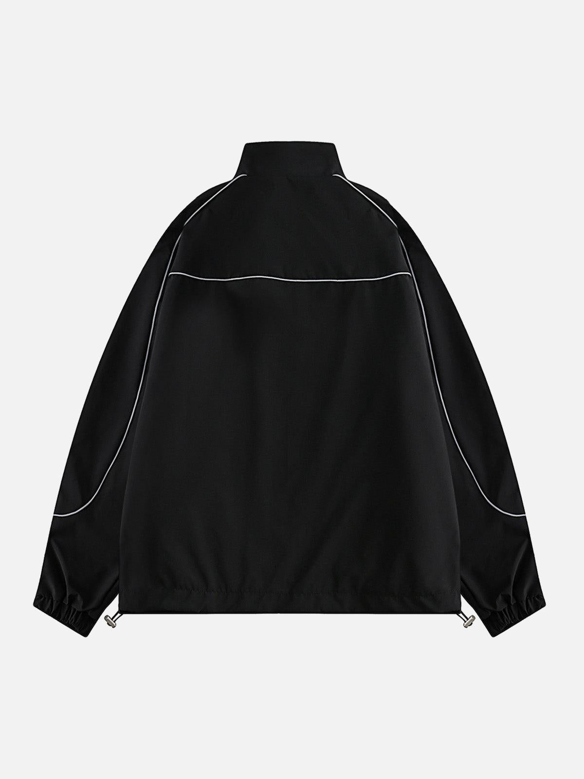 Break free from the ordinary with this sleek black jacket, where bold lines and contrasting geometric panels redefine streetwear fashion. The edgy design is elevated by subtle piping and striking striped sleeves, ensuring you stand out in any urban jungle. This jacket wraps you in comfort with its relaxed fit, available in M, L, XL, and 2XL, making it the perfect layer for those cool city nights. Pair it with your favorite kicks and embrace the y2k vibe for effortless outfit inspo. Ready to redefine your style? Step into the future now.