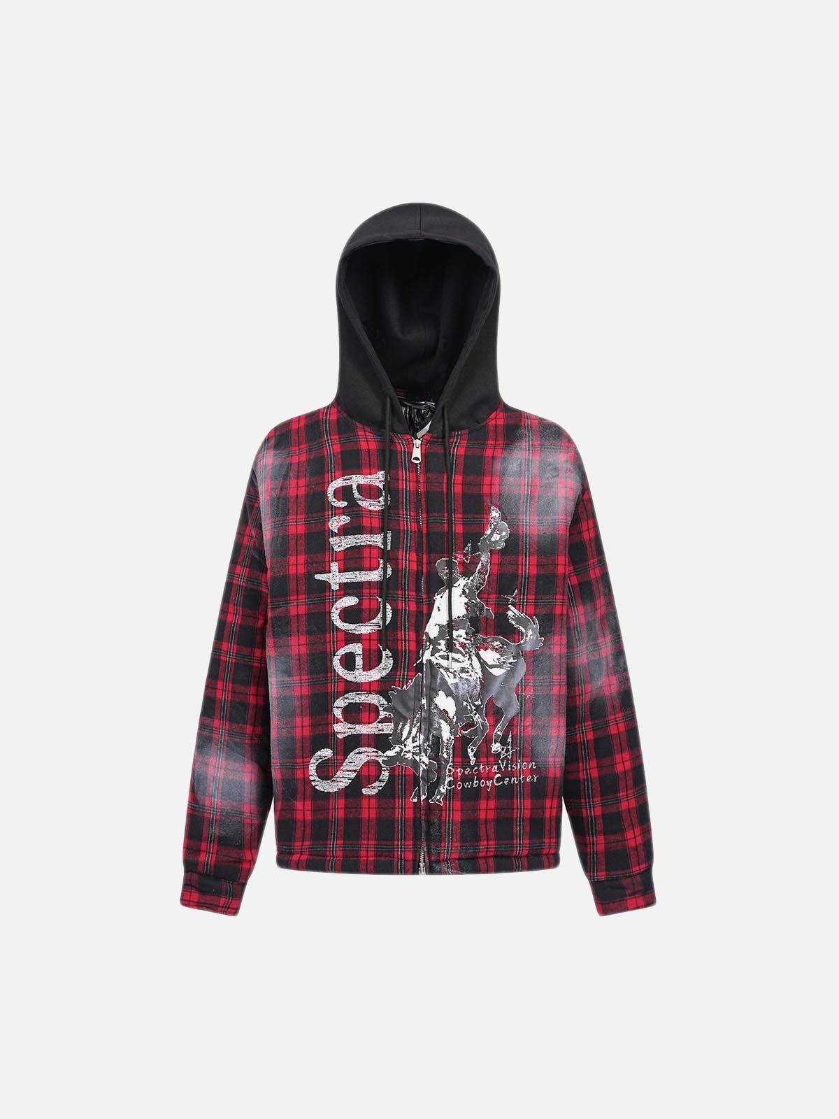 Stylish Concert Outfit: Dark Plaid Hooded Quilted Jacket for Events