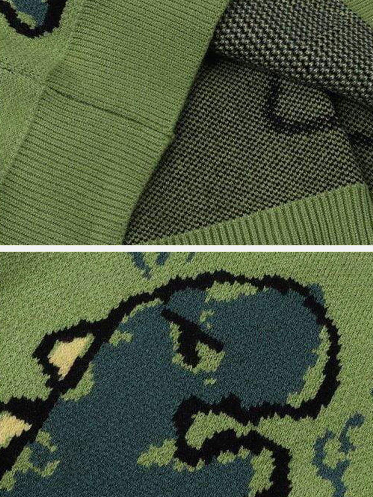 Transform your streetwear game with this playful green cardigan featuring bold dinosaur graphics that roar with personality. The rich texture of the knit provides a cozy yet urban feel, perfect for layering over your favorite tees. Available in sizes XS through XL, its relaxed fit ensures comfort while keeping you on the cutting edge of y2k fashion. Whether you’re exploring new outfit ideas or seeking fresh outfit inspo, this piece is your go-to for making every day a little more adventurous. Step into the wild side and let your style speak volumes.