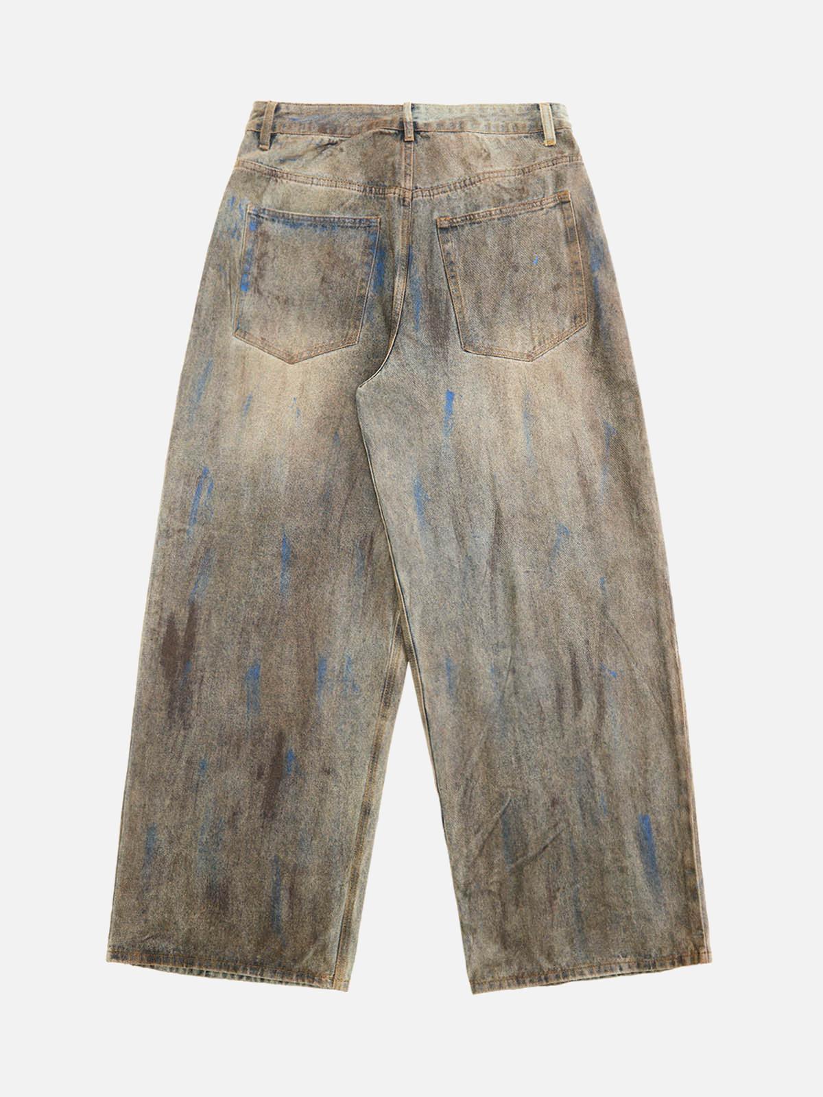 Embrace the raw energy of streetwear fashion with these distinctive jeans that turn heads with their artfully distressed texture and urban-inspired splashes of color. The unique gray palette, subtly highlighted with strokes of blue and brown, creates an effortlessly cool vibe that resonates with the bold spirit of modern street style. Designed for a relaxed fit, these jeans provide comfort and edge, available in sizes from M to 2XL to suit every style enthusiast. Pair them with your favorite oversized tee or a sleek jacket for a killer y2k outfit that stands out in any crowd. Dive into this bold look and make it your own.