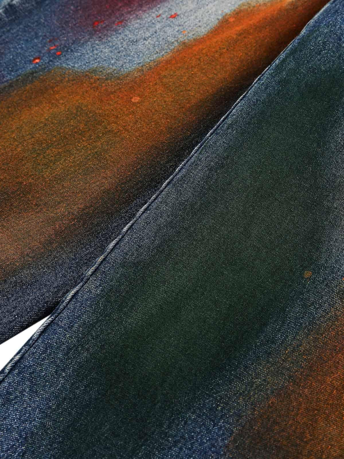 Channel your inner artist with these vibrant jeans, where each brushstroke of color boldly defies convention. The deep dark blue denim serves as a striking canvas, highlights of fiery oranges and rich greens splattered with precision for an unmistakable urban vibe. Available in sizes M to 2XL, these jeans offer the perfect relaxed fit, seamlessly blending comfort with standout style. Pair them with a sleek jacket or an oversized tee for endless outfit ideas that scream individuality. Dive into the world of streetwear fashion and let your wardrobe speak volumes.
