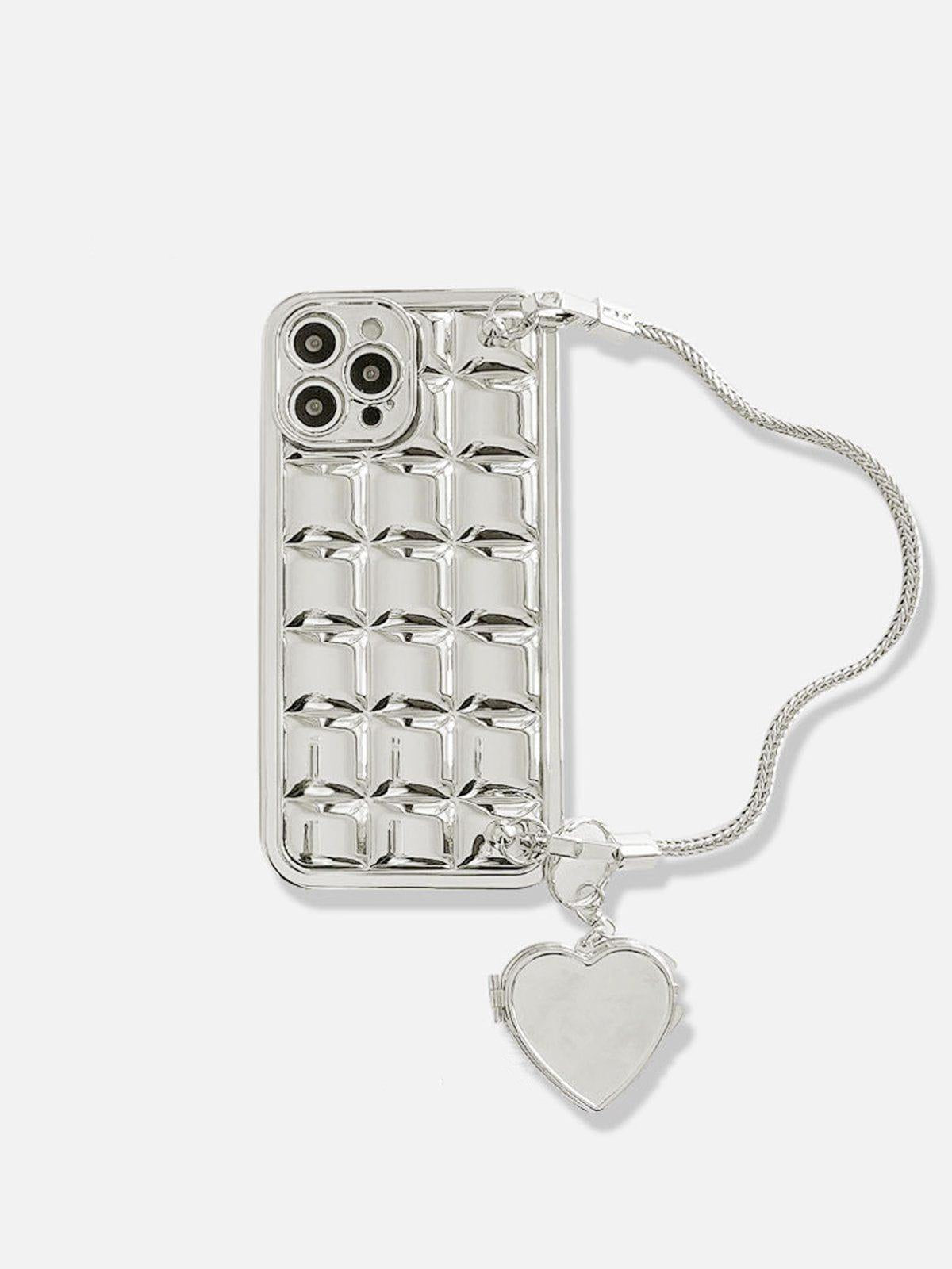 Stylish Concert Outfit: Electroplate Heart Chain Mobile Phone Case