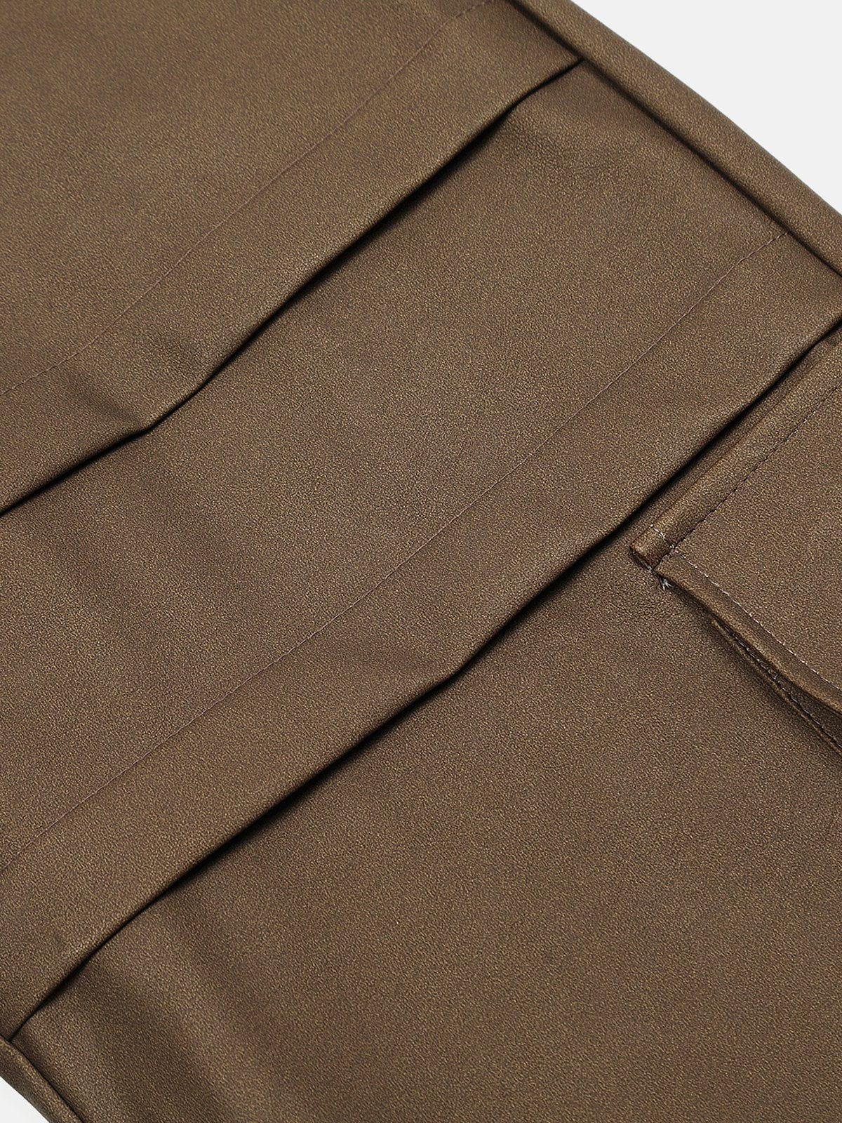 Embrace urban edge with these striking wide-leg cargo pants, where boldness meets functionality. The deep brown hue offers a versatile base that’s perfect for any streetwear fashion ensemble, while the generous pockets and sleek lines deliver a daring twist on classic design. Crafted in a sturdy, smooth fabric, these pants promise both comfort and style, whether you’re hitting the city streets or crafting new outfit ideas. Available in one size, they offer a relaxed fit that effortlessly complements any bold top or jacket. Step up your style game and let your look speak volumes.