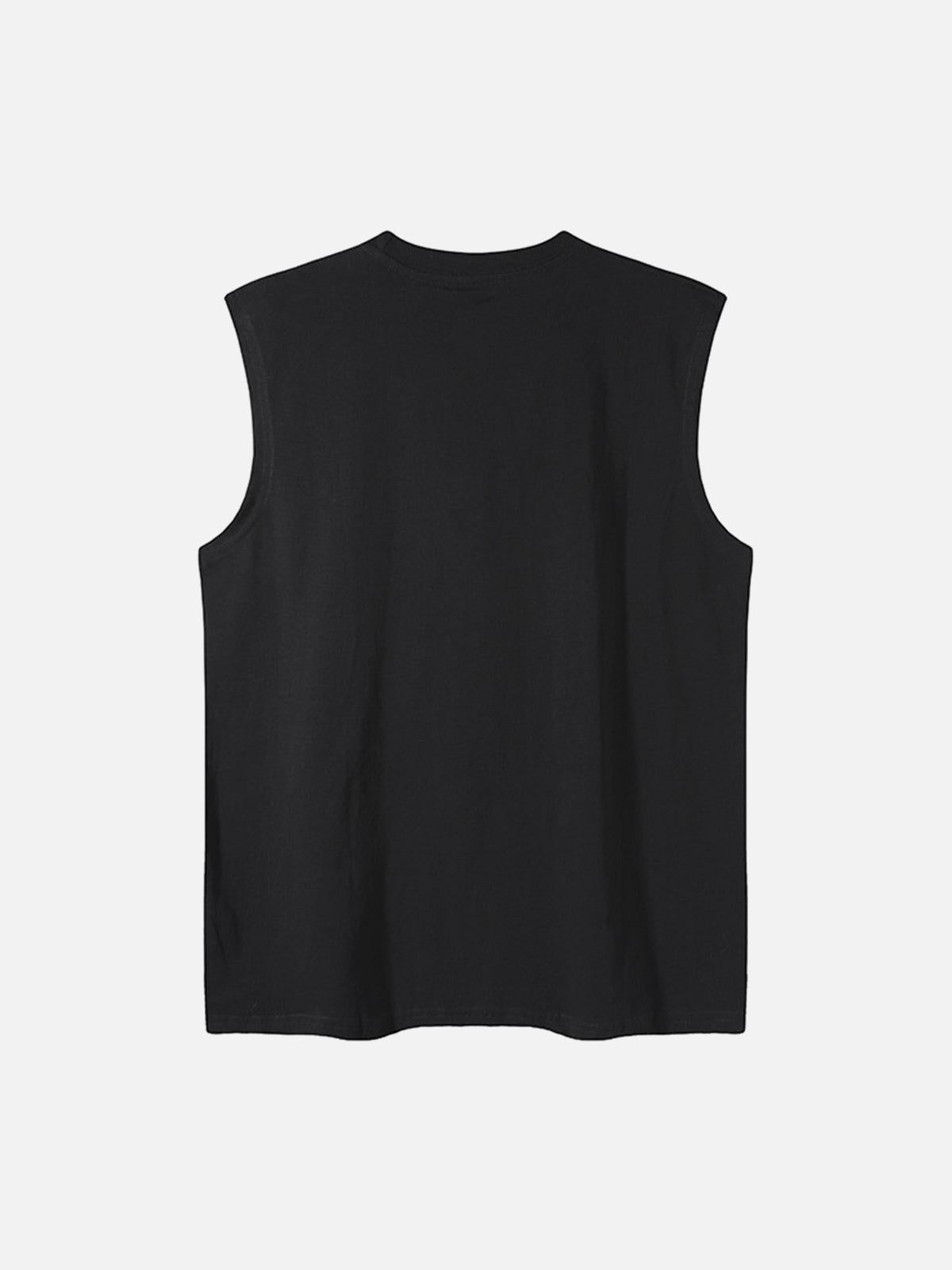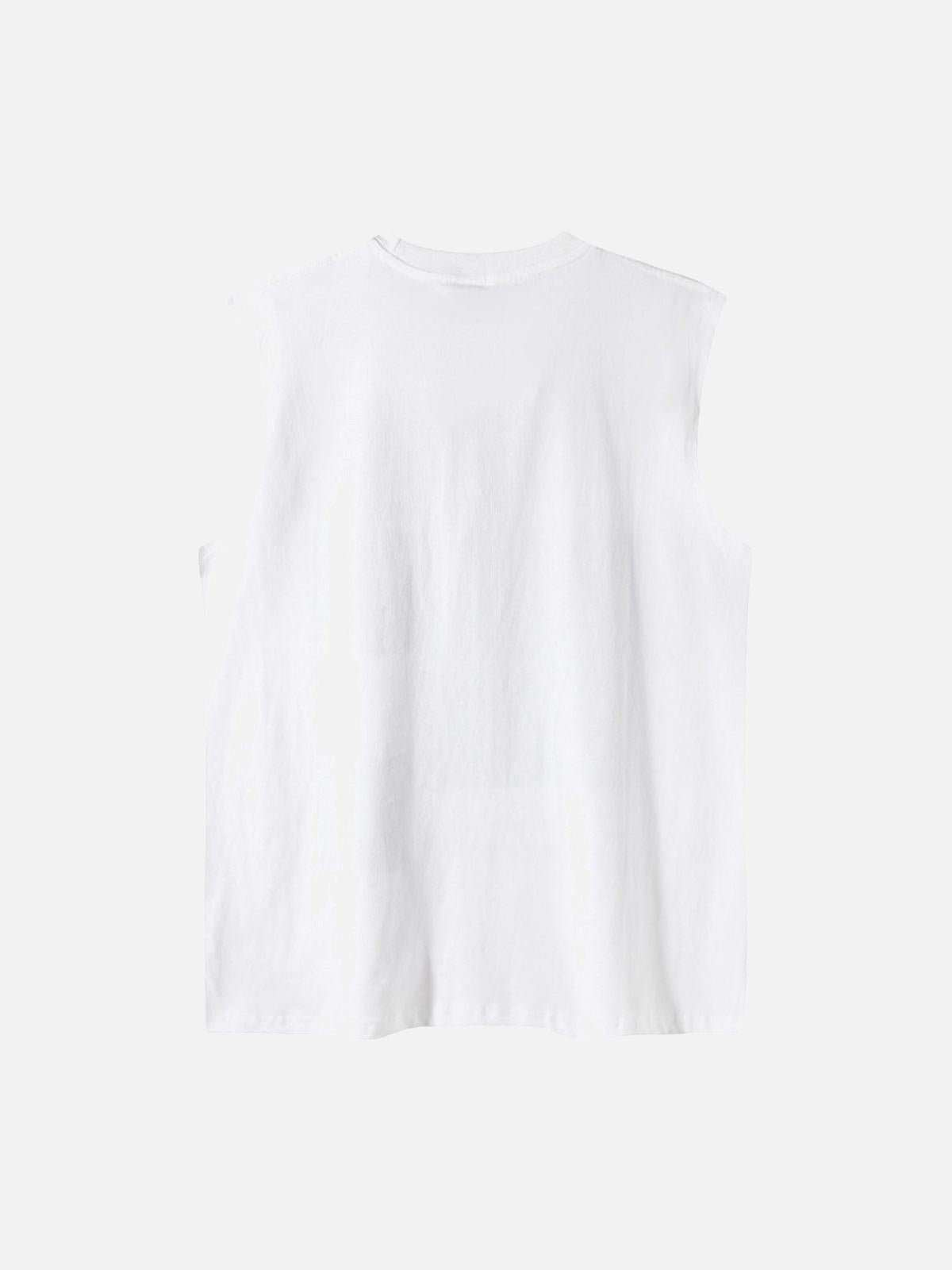 Let your style speak volumes with this edgy sleeveless tee, featuring a bold collage of graphic prints and handwritten text that scream urban rebellion. Available in both classic black and crisp white, this gritty design blends seamlessly with any y2k-inspired look. Its relaxed fit ensures comfort across all sizes, from S to 2XL, while the soft fabric feels like a second skin. Pair it with distressed jeans or layer under a statement jacket for endless outfit ideas. Gear up and redefine streetwear fashion with this standout piece.