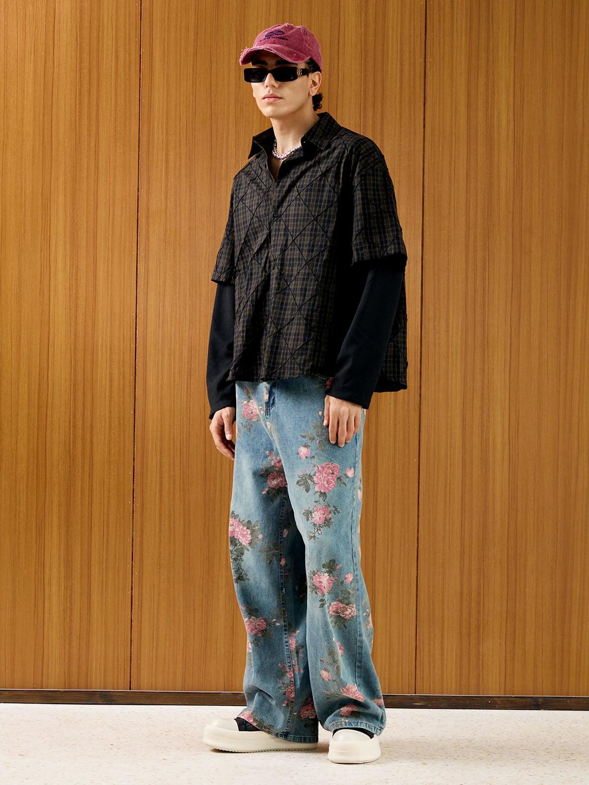 Stylish Concert Outfit: Heavy Plaid Pleated Striped Faux Two-polo Shirt