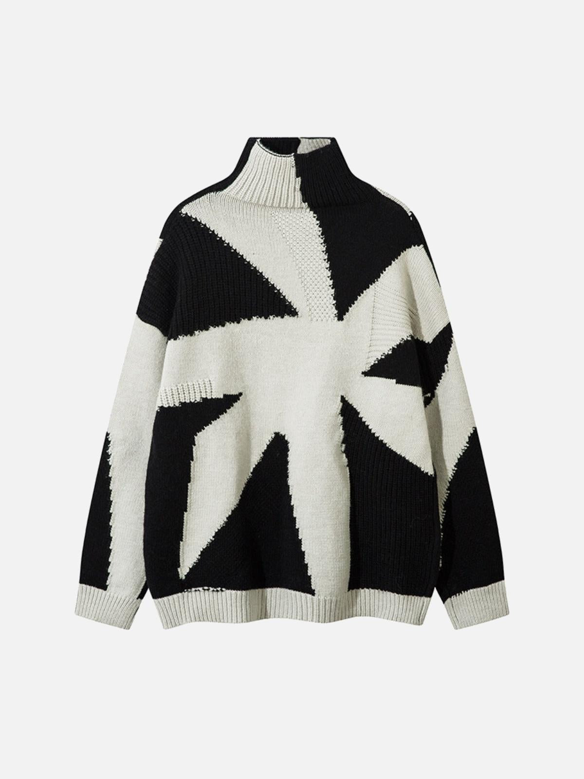 Break the mold with this audacious knit sweater, where bold geometric patterns collide in a daring black and white design that screams urban sophistication. The high-neck cut melds comfort with edgy style, perfect for those who lead the charge in streetwear fashion. Available in versatile sizes ranging from M to XXL, and in striking color options like gray and yellow, this piece adds a layer of intrigue to any outfit. Its relaxed fit effortlessly blends with y2k outfits, making it a staple for your next adventure. Slide into something extraordinary and redefine your style narrative.