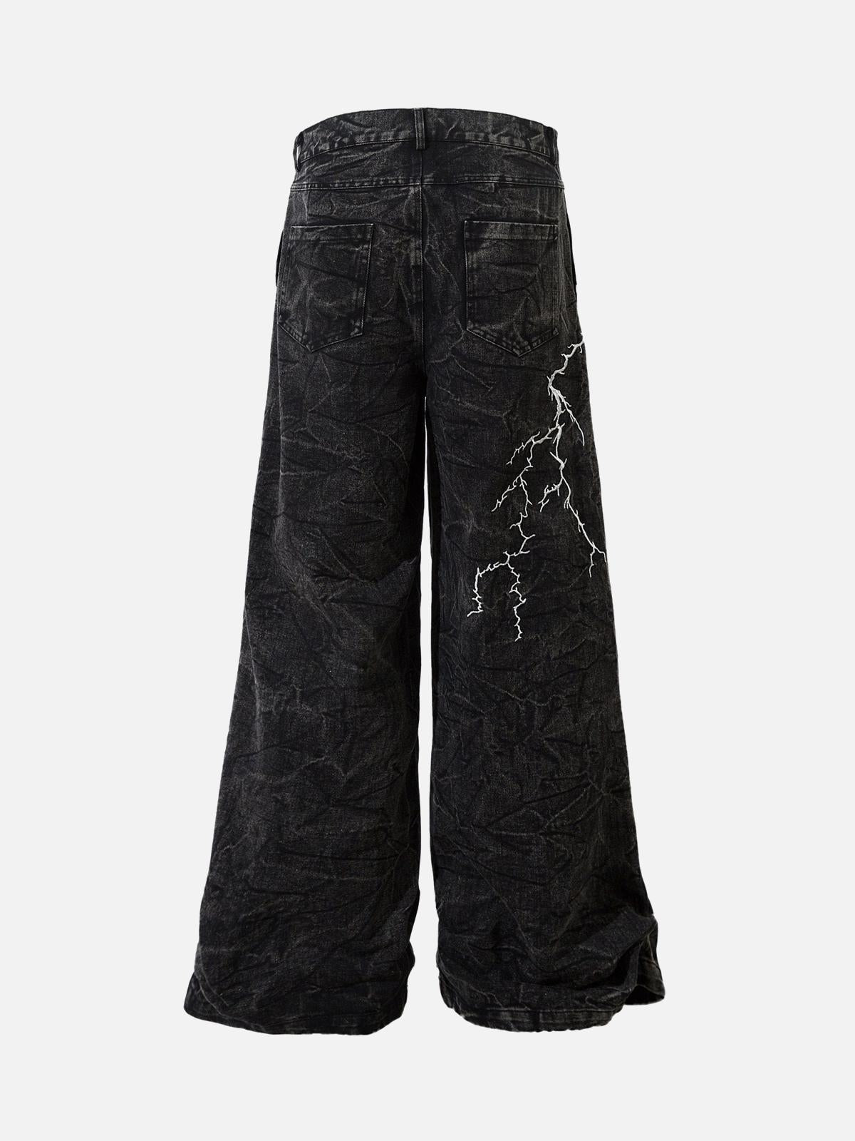 Electrify your streetwear fashion game with pants that command attention through bold lightning graphics streaking across a rich black backdrop. The crinkled texture not only adds a tactile dimension but also pairs perfectly with your favorite oversized hoodie or a sleek tee for a killer y2k outfit. Available in sizes M to 2XL, these pants ensure a comfortable fit that lets you move with ease and confidence. Embrace the energy and redefine your outfit inspo today.