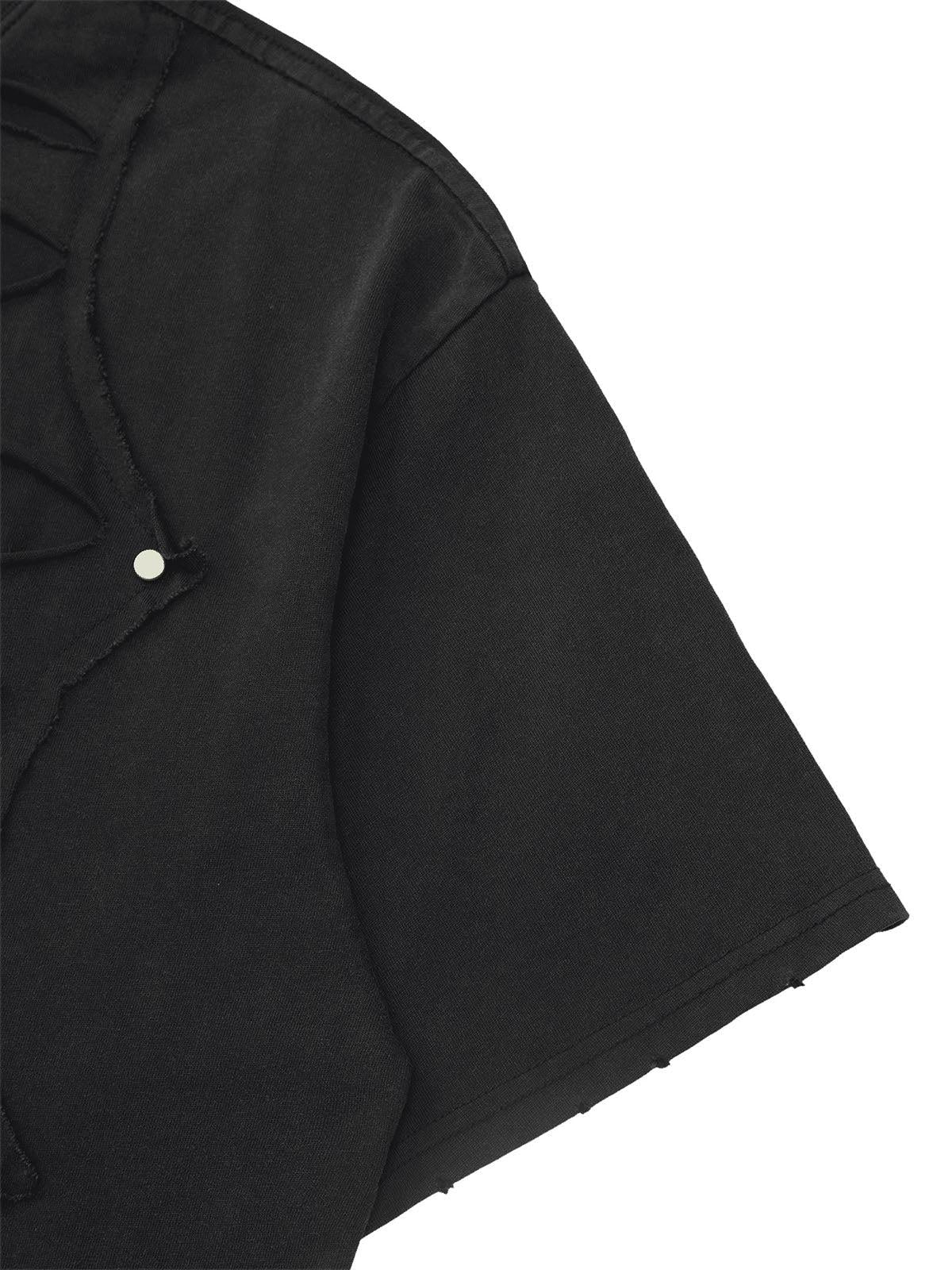 Break the mold with this audacious tee, where intricate cut-out designs meet a rugged aesthetic, making it the ultimate piece for those who dare to redefine summer style. The bold patterning across the front adds a dynamic texture, while the earthy brown tone grounds the look, perfect for pairing with your favorite streetwear essentials. Available in XL and 2XL, this tee offers a relaxed fit that’s both comfortable and effortlessly cool, ensuring you stand out in any setting. Whether you’re hitting the urban jungle or chilling at a rooftop party, this piece is your go-to for unapologetic expression. Grab yours now and own the summer fashion scene.