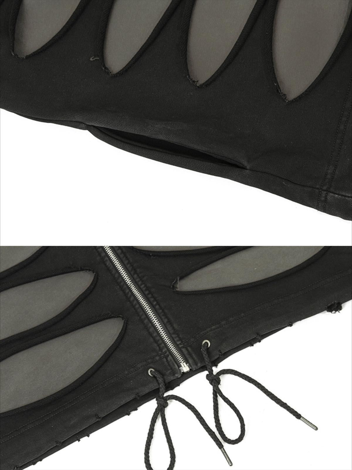 Redefine urban cool with this audacious hoodie, featuring edgy cut-out details that let you layer your look with bold confidence. The interplay of rugged gray and sleek black creates a striking contrast, making it a standout piece in any streetwear fashion ensemble. Available in sizes M, L, XL, and XXL, this hoodie offers a relaxed fit that’s perfect for layering over your favorite tees or pairing with distressed jeans for the ultimate Y2K outfit inspo. Zip it up, pull the drawstrings, and let your style speak volumes.