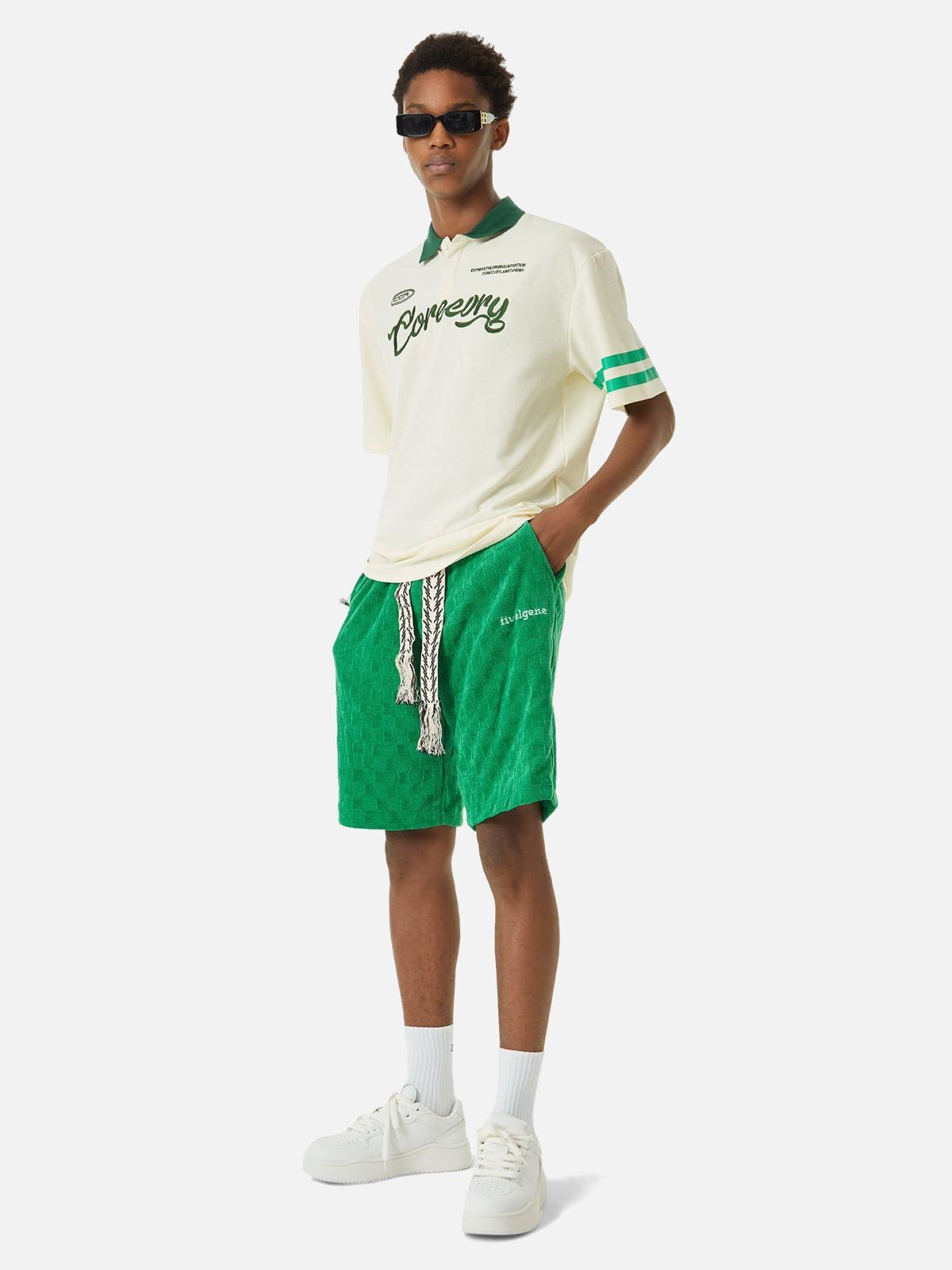 Revolutionize your streetwear game with a polo that speaks volumes in understated elegance. This piece boasts a bold green collar and matching sleeve stripes that pop against its smooth beige backdrop, while the dynamic script and detailed embroidery add layers of texture and depth. Available in versatile sizes from S to L, its relaxed fit makes it the perfect partner for both casual outings and styled-up nights. Whether you’re pairing it with sleek black joggers or vibrant shorts, this polo is your gateway to effortless y2k outfit inspo. Ready to redefine your wardrobe?