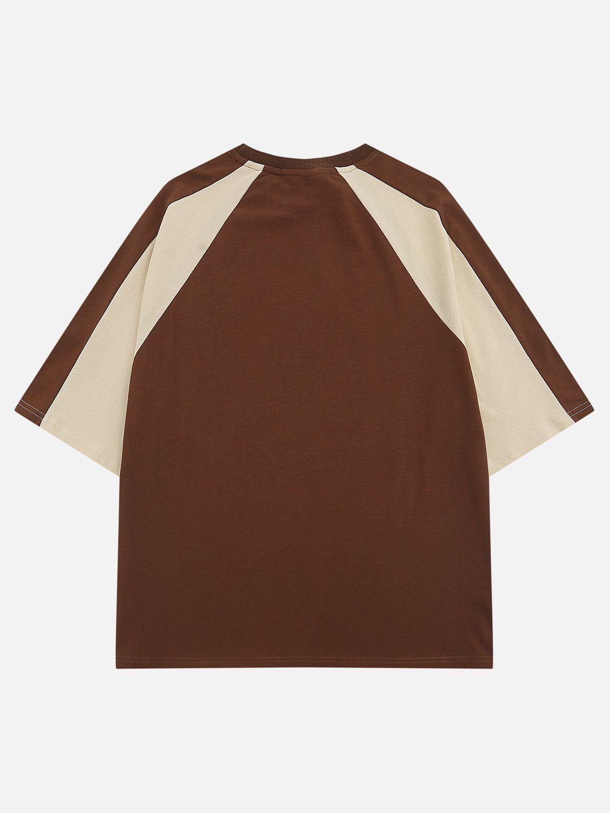 Unleash your urban edge with this bold tee, flaunting a classic coffee hue that effortlessly merges vintage vibes with modern streetwear flair. Its contrasting gray raglan sleeves and oversized fit offer ultimate comfort, making it a versatile piece for every summer outfit. Available in sizes S through XL, this tee is designed to seamlessly blend into your summer style, whether you’re pairing it with ripped jeans or layering it under a sleek jacket. Own the streets with confidence and let your wardrobe speak volumes.