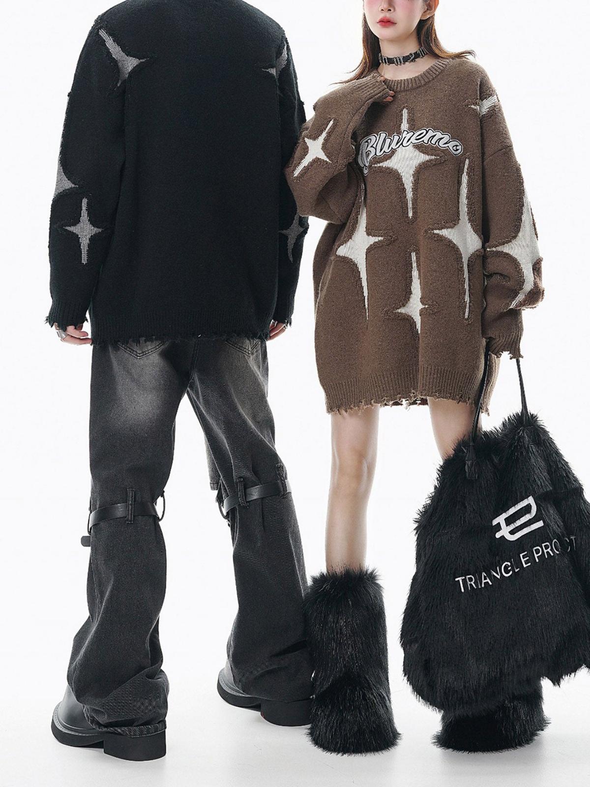 Channel your inner urban rebel with this striking sweater, where bold star motifs collide with a rich brown canvas for a look that’s unapologetically fresh. The soft texture wraps you in comfort while the distressed hem adds just the right amount of edge, perfect for crafting those standout y2k outfits. Available in versatile black and brown, and sizes from M to 2XL, this piece is designed to fit your style and mood effortlessly. Pair it with your favorite streetwear essentials and let your outfit do the talking.
