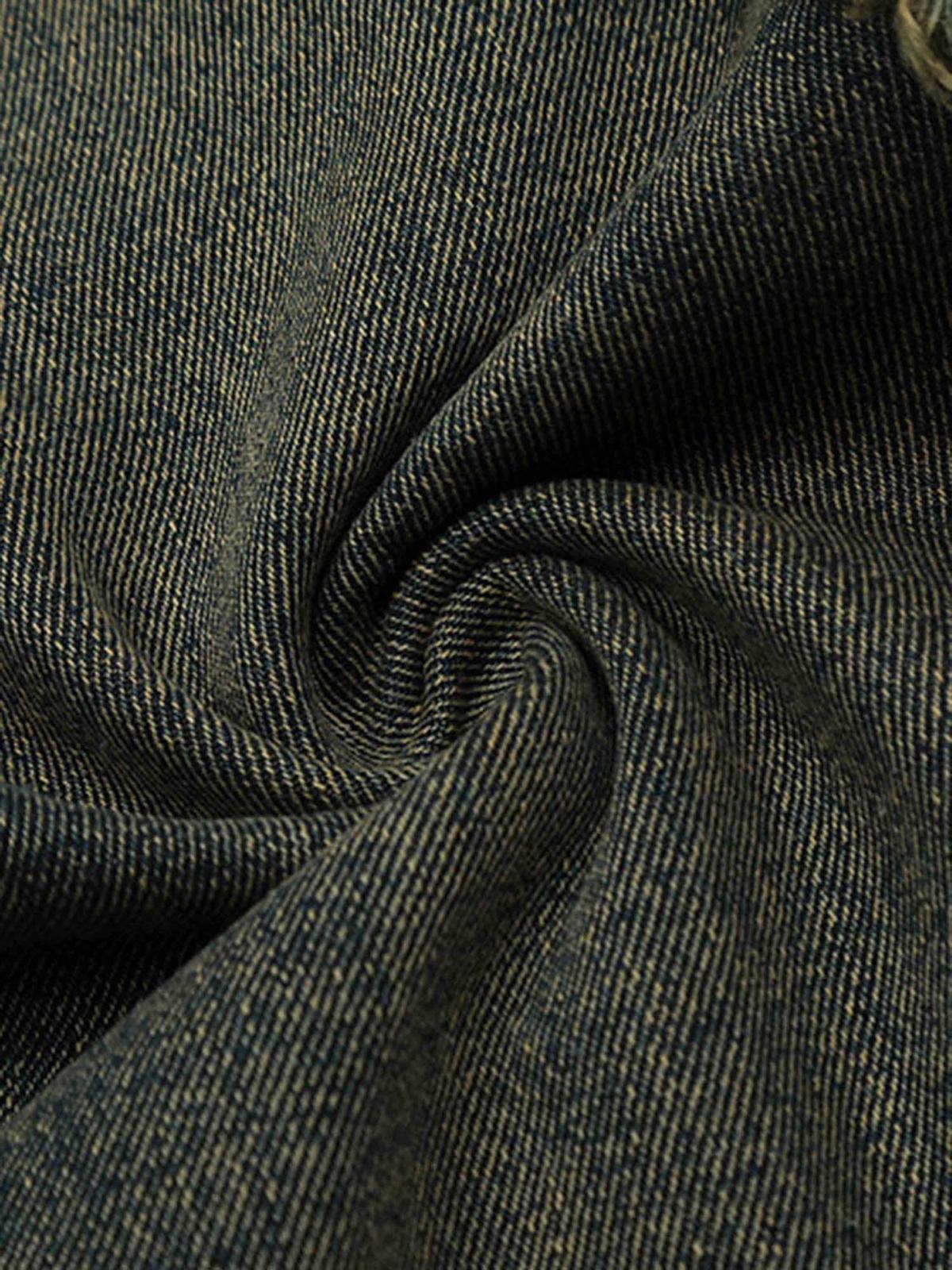 Break the mold with these edgy, deconstructed jeans, featuring raw, frayed seams that ooze rebellious streetwear fashion vibes. The deep black hue is versatile, pairing effortlessly with any top, while the irregular patchwork design adds a bold twist to your wardrobe. Made for those who dare to be different, these jeans are cut for comfort and style, available in sizes ranging from S to 2XL, ensuring the perfect fit for every urban explorer. Slip into these and let the world become your runway, challenging the ordinary with every step.