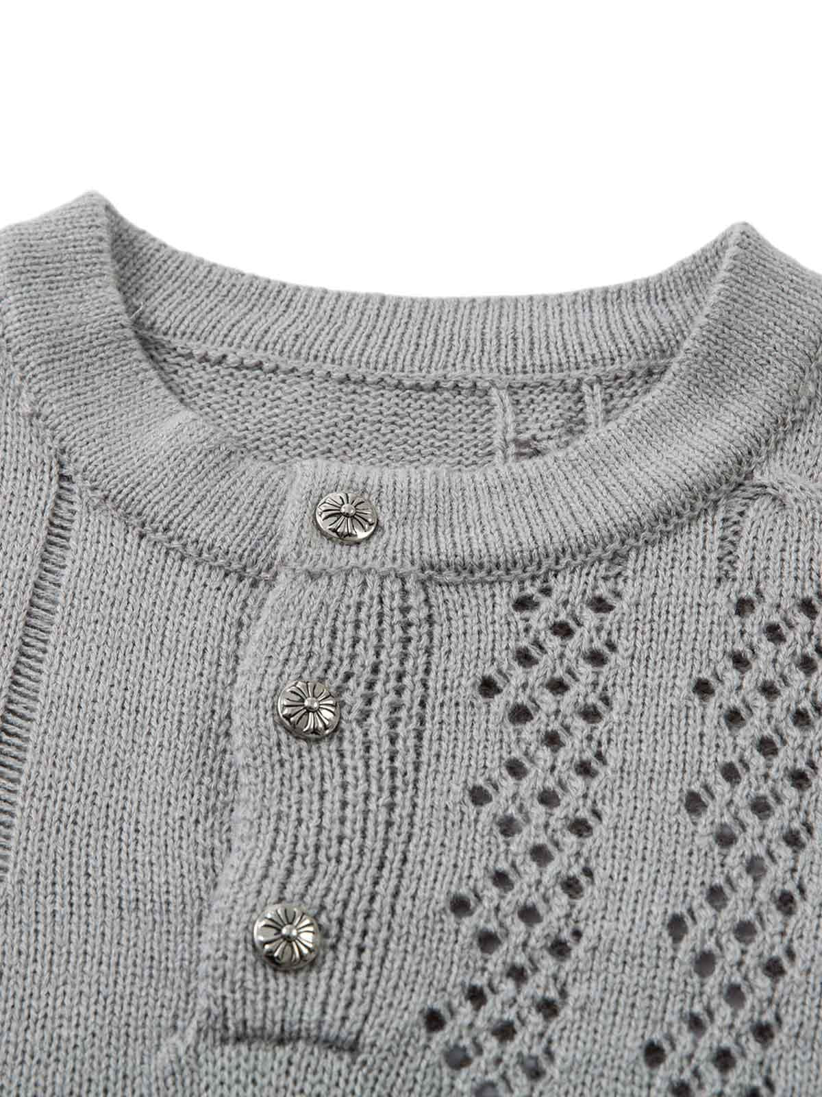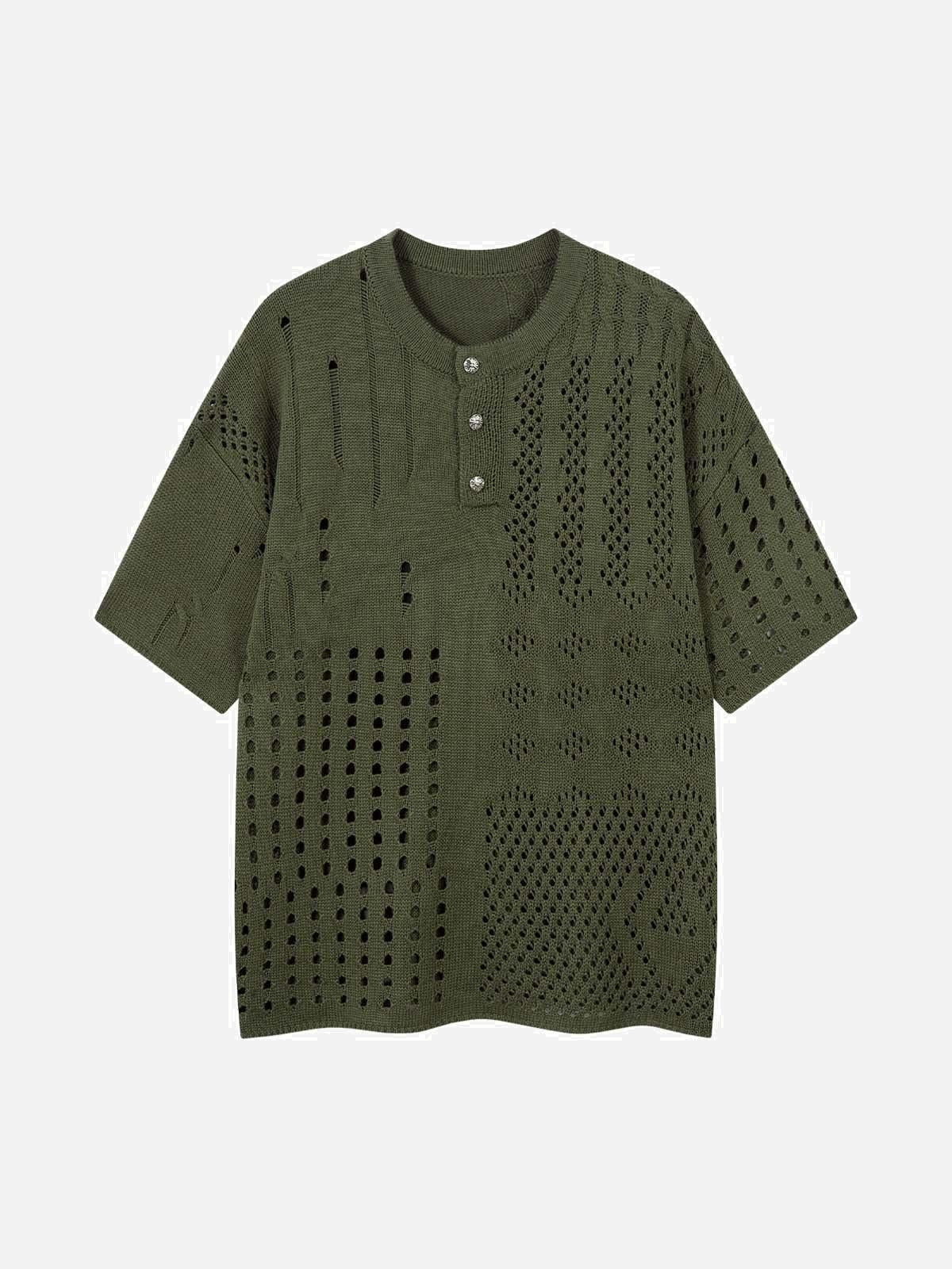 Break the mold with this edgy knit that combines intricate cut-out patterns with a relaxed fit, perfectly balancing bold aesthetics and comfort. The textured gray hue adds an urban edge, while the breathable fabric makes it ideal for layering across all seasons. Available in Green, Gray, and Black, this piece pushes the boundaries of streetwear fashion and offers versatile style options in M, L, and XL. Pair it with distressed jeans for a raw, effortless vibe or layer over a sleek turtleneck for those cooler nights. Dive into the world of unique outfit inspo and let your wardrobe stand out from the crowd.
