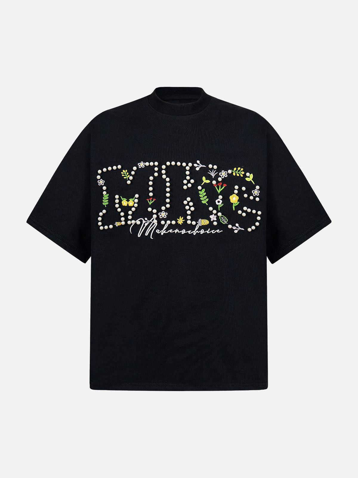 Stylish Concert Outfit: Oversized Embroidered Floral Letter T-shirt