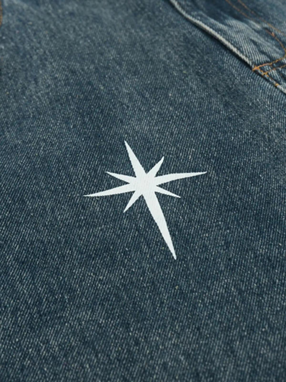 Ride the wave of retro flair with these denim pieces that bring the essence of y2k outfits to life. Featuring a washed blue hue that screams classic cool, these jeans are adorned with star motifs that add a sprinkle of cosmic edge to any outfit. The relaxed fit provides an effortless drape, whether you’re pairing them with oversized tees or a sleek jacket. Available in medium, large, and extra-large, they ensure a perfect fit for every urban explorer. Slip into these standout jeans and let your streetwear fashion speak volumes.