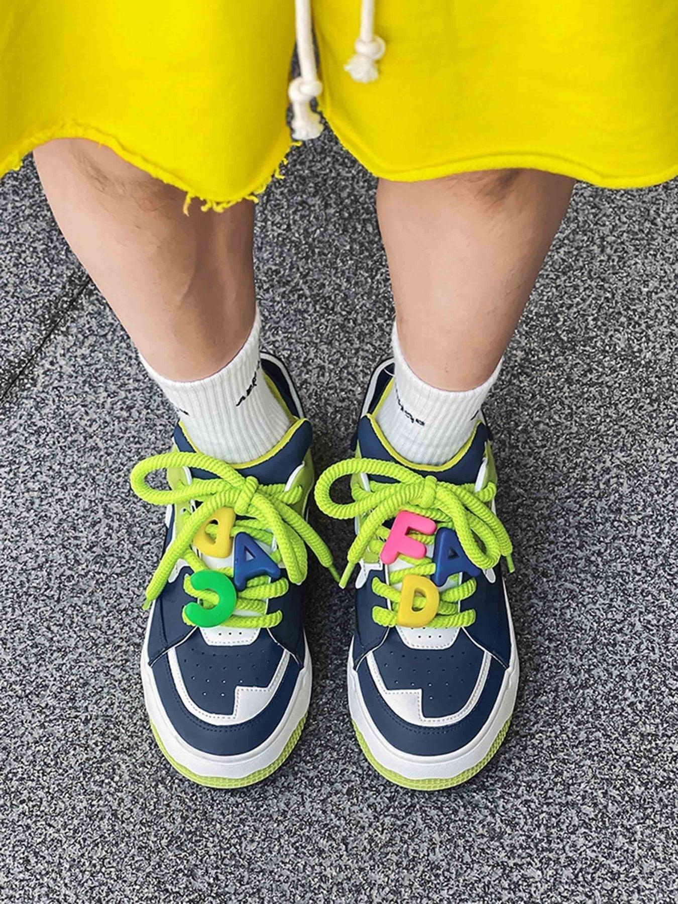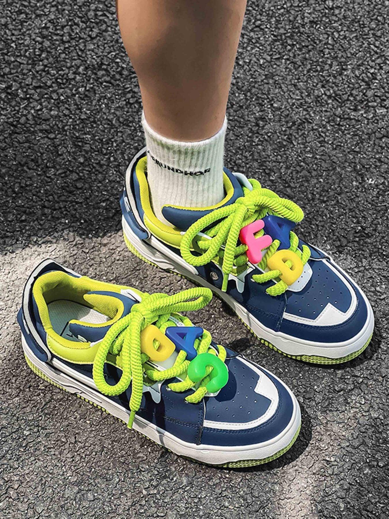 Stride into the future with these sneakers that blend vibrant colors and bold design effortlessly. The striking combination of deep navy and electric lime green, accented with pops of pink and yellow, creates a visual symphony that screams urban edge. Crafted for those who dare to stand out, the smooth textures and robust construction promise both comfort and durability. Available in sizes ranging from 35 to 44, these kicks ensure the perfect fit for every streetwear enthusiast. Pair them with your favorite y2k outfits or mix them into your everyday streetwear fashion for a look that’s unapologetically you. Ready to redefine your sneaker game?