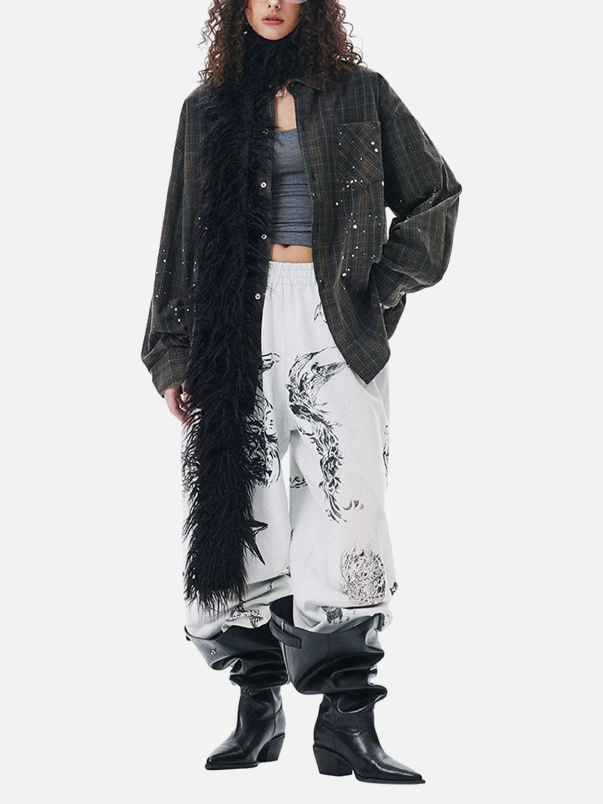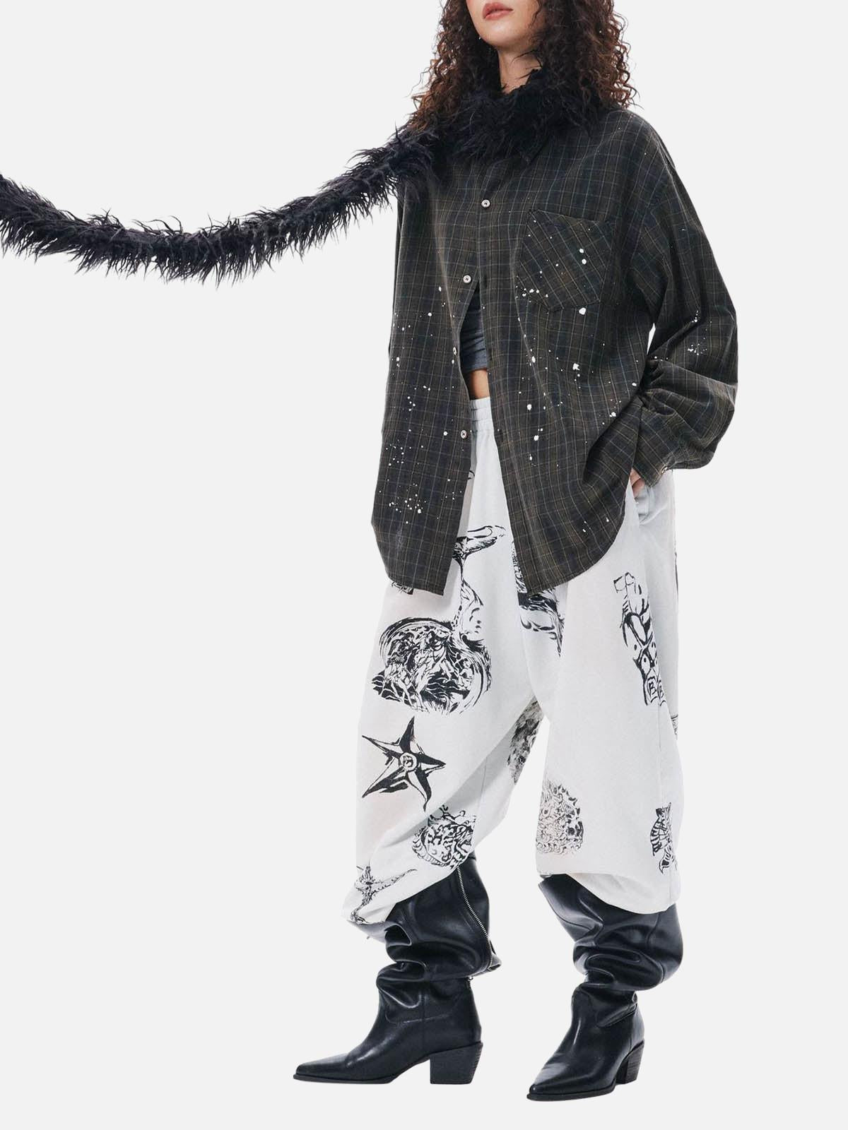 Break boundaries with this bold shirt that fuses classic plaid with a rebellious splash of paint splatters. The deep black base serves as a canvas for its expressive design, making it perfect for those who live for streetwear fashion. Available in sizes M, L, XL, and 2XL, its relaxed fit and soft texture make it an easy choice for layering over your favorite tee or under a sleek jacket. Pair it with distressed jeans or cargo pants for a look that’s effortlessly cool. Dive into the urban scene and let your style speak volumes.