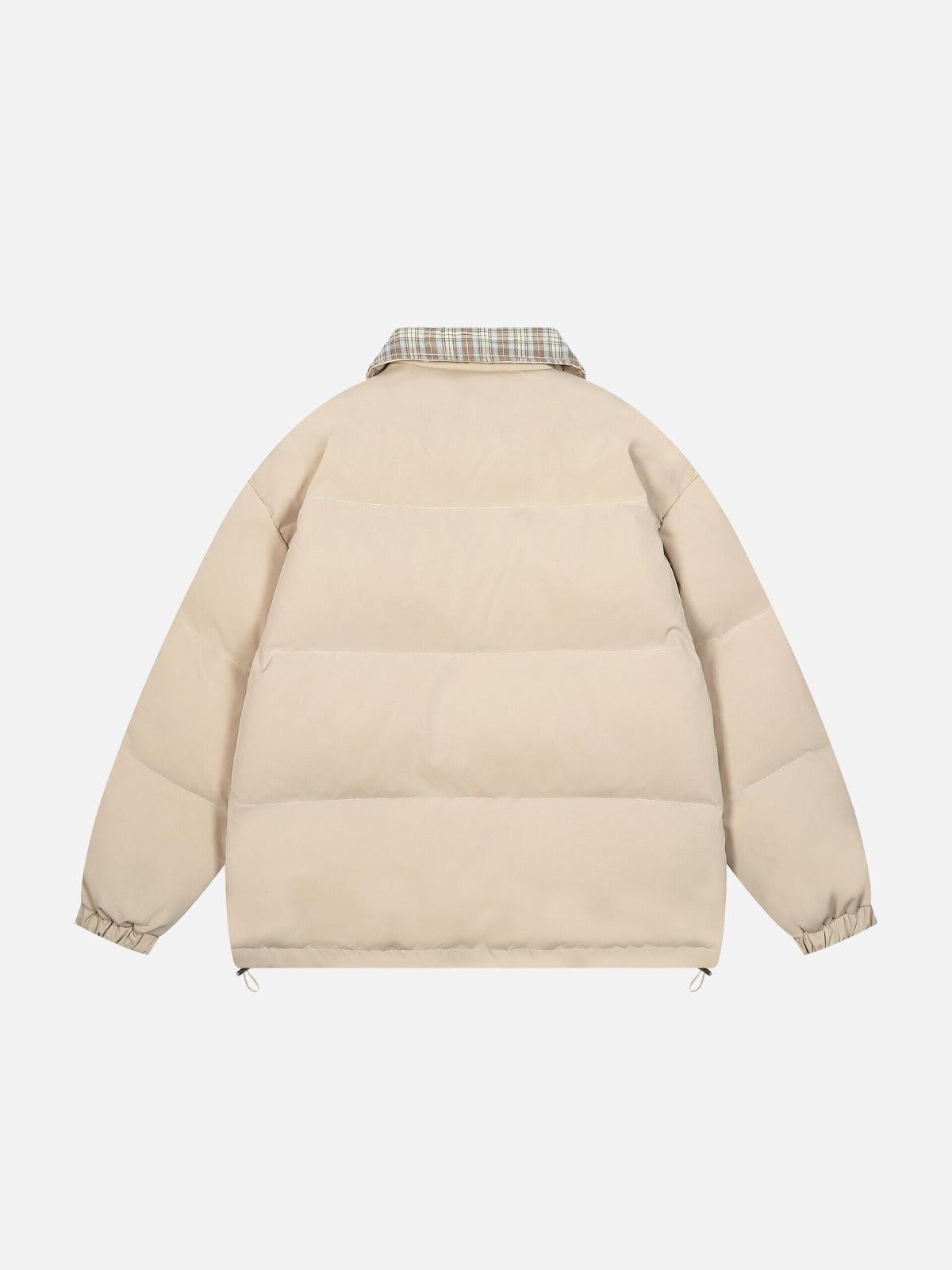 Blending vintage vibes with a modern flair, this jacket is your ticket to effortless cool. Its plush, quilted texture offers warmth and comfort in a relaxed fit, perfect for layering over your favorite streetwear pieces. The neutral tones make it versatile for any outfit ideas, while the plaid collar adds a touch of classic urban style. With a convenient one size fit, it’s your go-to for a bold look that doesn’t compromise on comfort. Embrace the essence of y2k outfits with this unique piece and redefine your style narrative.