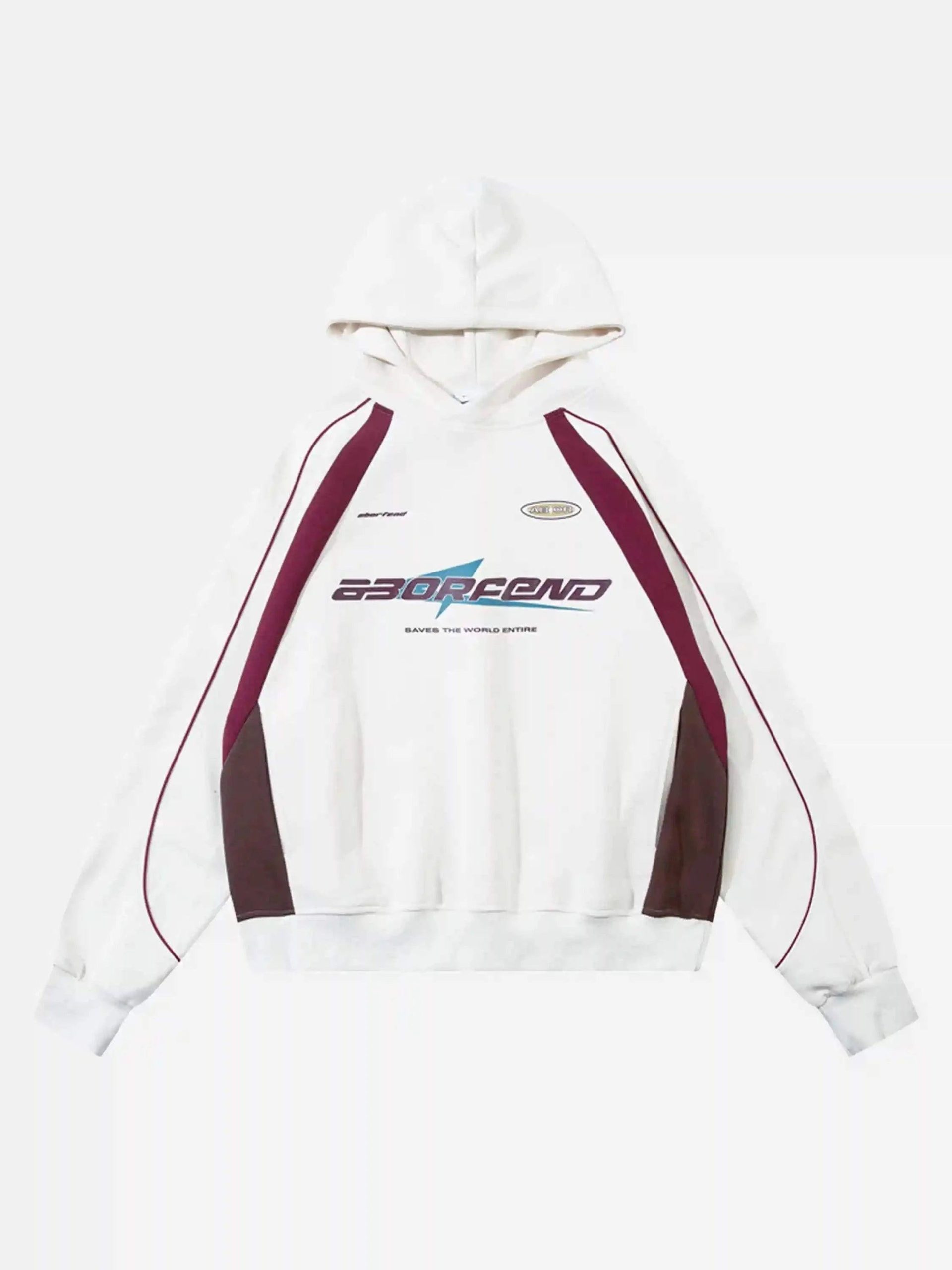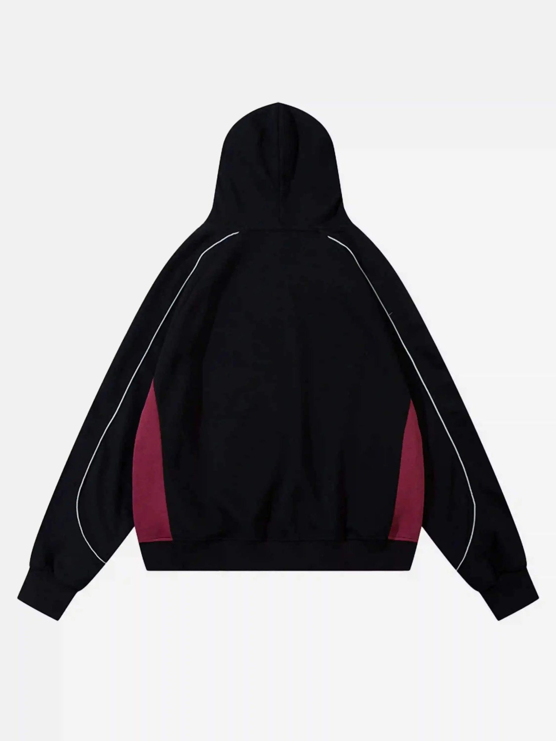Revolutionize your streetwear game with this bold hoodie that merges sleek design with urban flair. The striking black canvas is accentuated by sharp white and deep burgundy panels, creating a dynamic contrast that demands attention. The oversized fit drapes effortlessly, offering a cozy feel without compromising edge, making it perfect for layering over your favorite Y2K outfits. Available in sizes S through XL, this piece ensures everyone can find their perfect fit. Pair it with distressed jeans or joggers for outfit ideas that stand out. Dare to define your look and let this hoodie be your canvas.