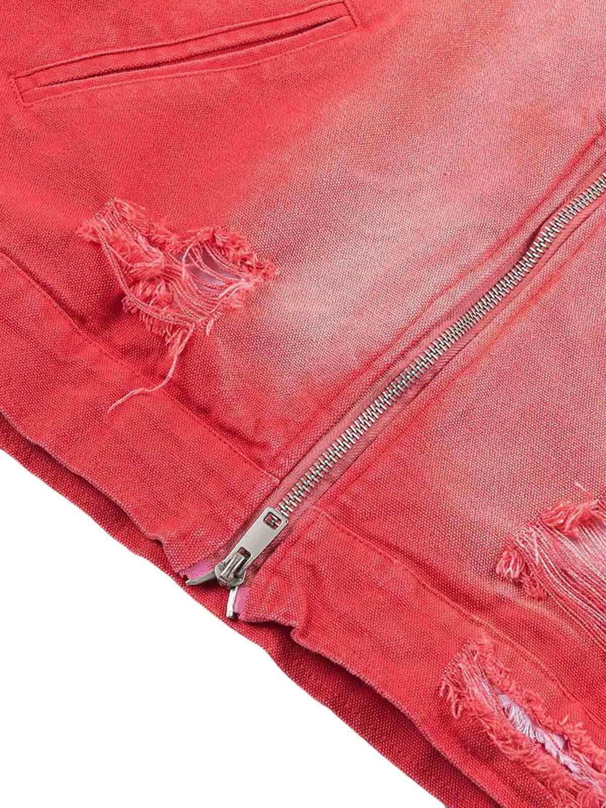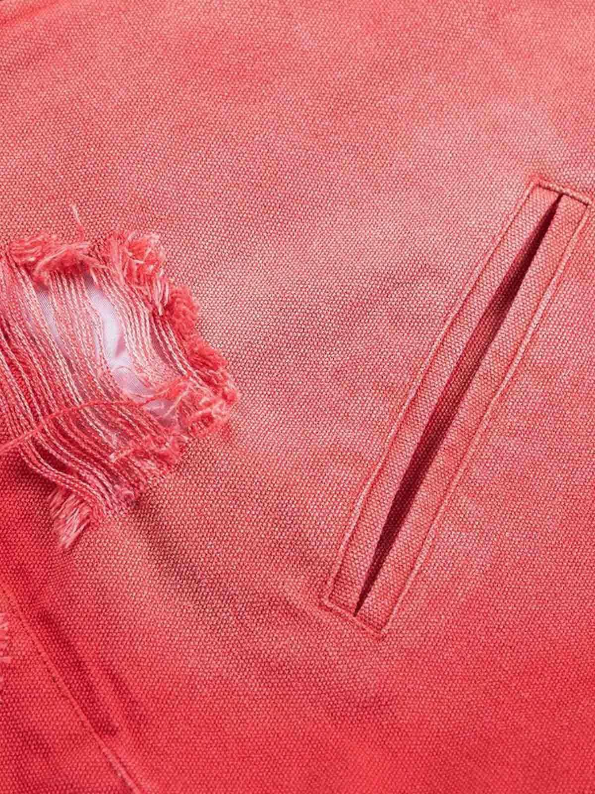 Break through the ordinary with this striking jacket that merges boldness with edge, featuring a vivid red hue that seamlessly blends into a distressed texture for that authentic urban vibe. Its deep blue collar adds a sharp contrast, giving you a standout look whether you’re in the mood for some y2k nostalgia or fresh streetwear fashion. With sizes ranging from M to 2XL, this piece is tailored for those who embrace comfort without sacrificing style. Pair it with your favorite jeans or layer it over a graphic tee for endless outfit ideas. Step into the street with confidence.