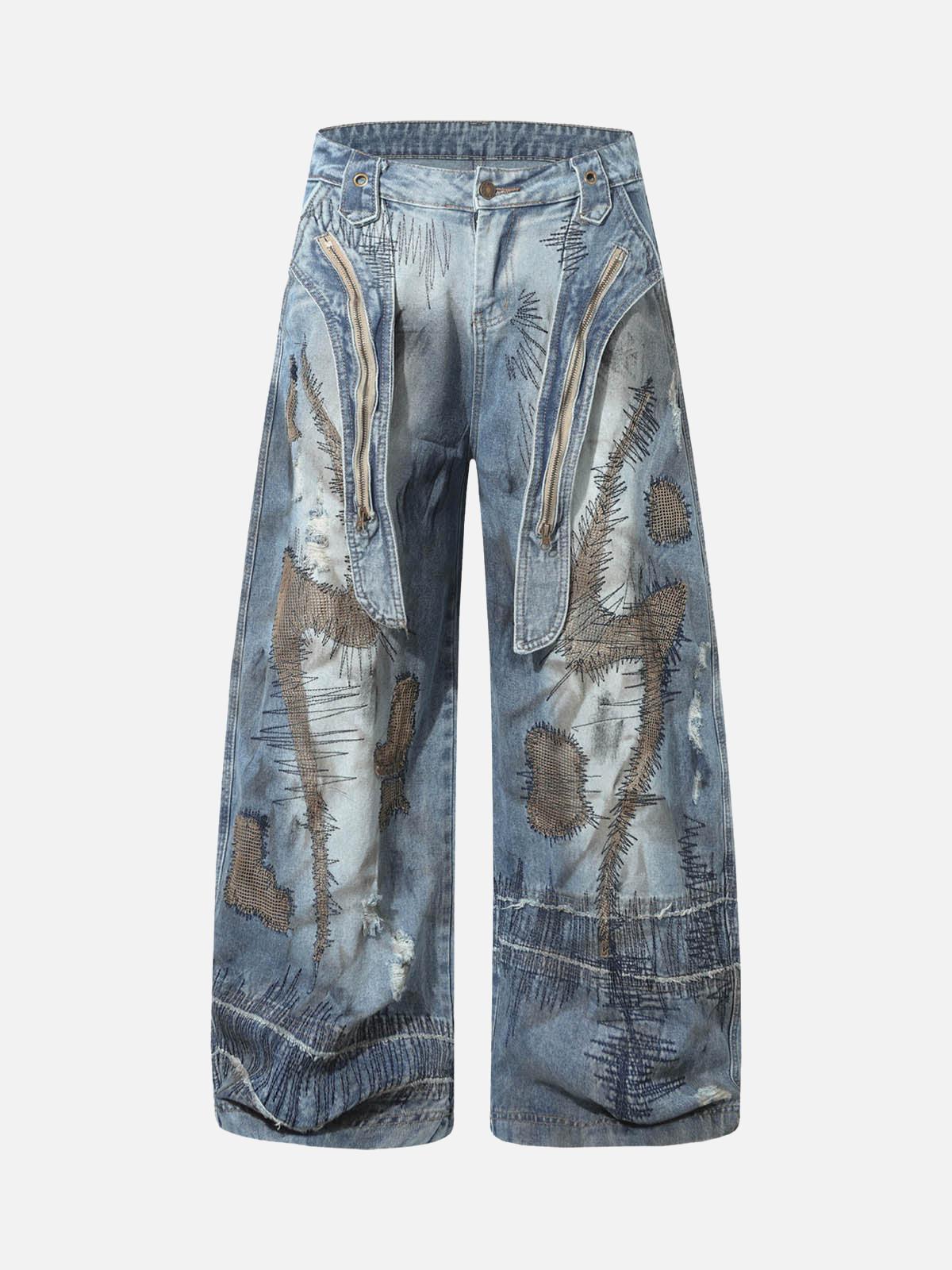 Embrace the raw edge of urban style with these audacious denim pants, where distressed textures meet bold stitch detailing in a striking blue canvas. The oversized fit flows effortlessly, offering comfort in sizes from M to 3XL, perfect for crafting your next Y2K-inspired look. Zippered accents and rugged patches add a rebellious flair, capturing the essence of streetwear fashion. Pair them with your favorite sneakers and a relaxed tee for an outfit that speaks volumes. Slip into these and redefine your outfit ideas with every step.