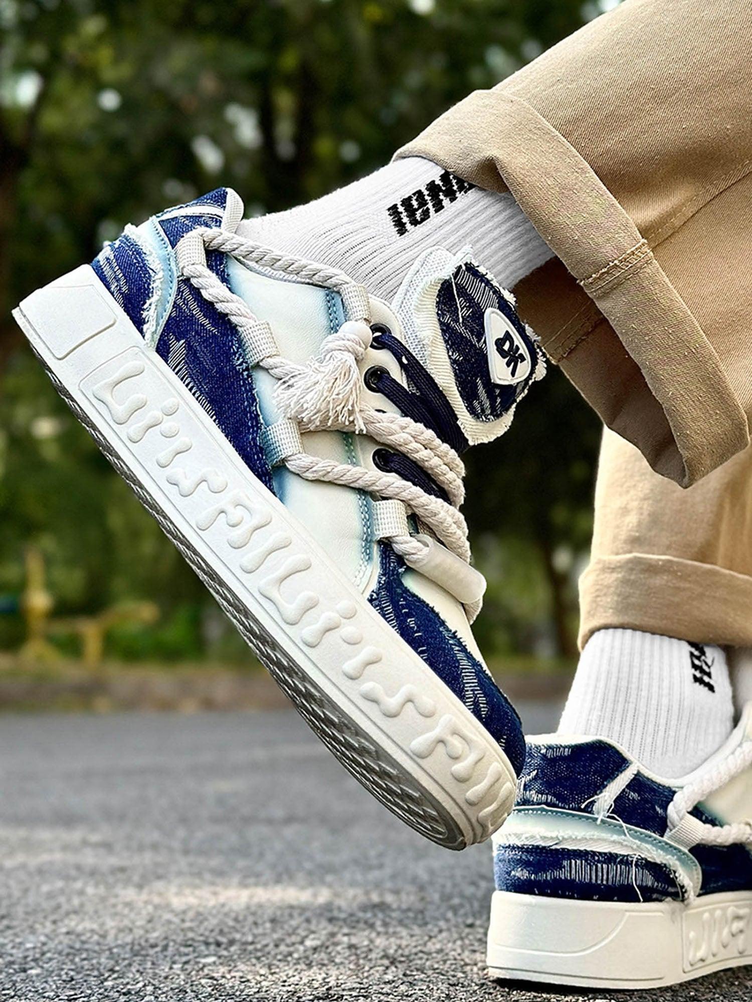 Break free from the ordinary with these sneakers that redefine streetwear fashion through bold textures and vibrant hues. The dynamic interplay of distressed denim accents and colorful lace tabs across the soft beige and blue canvas creates an effortlessly urban vibe. Offering a perfect fit in sizes ranging from 39 to 45, each step feels like a statement of individuality. Pair these kicks with your favorite y2k outfits for a look that’s both nostalgic and ahead of the curve. Embrace the bold and walk with confidence — your next outfit inspo is right here.
