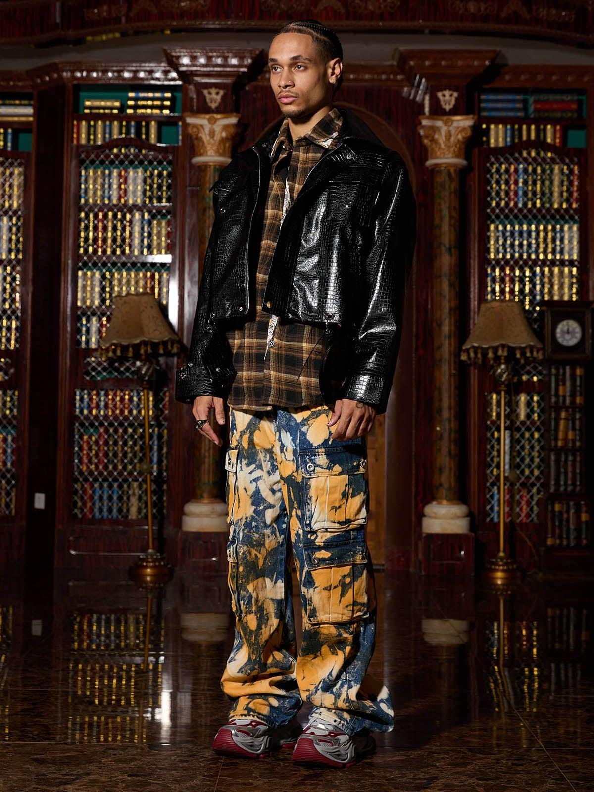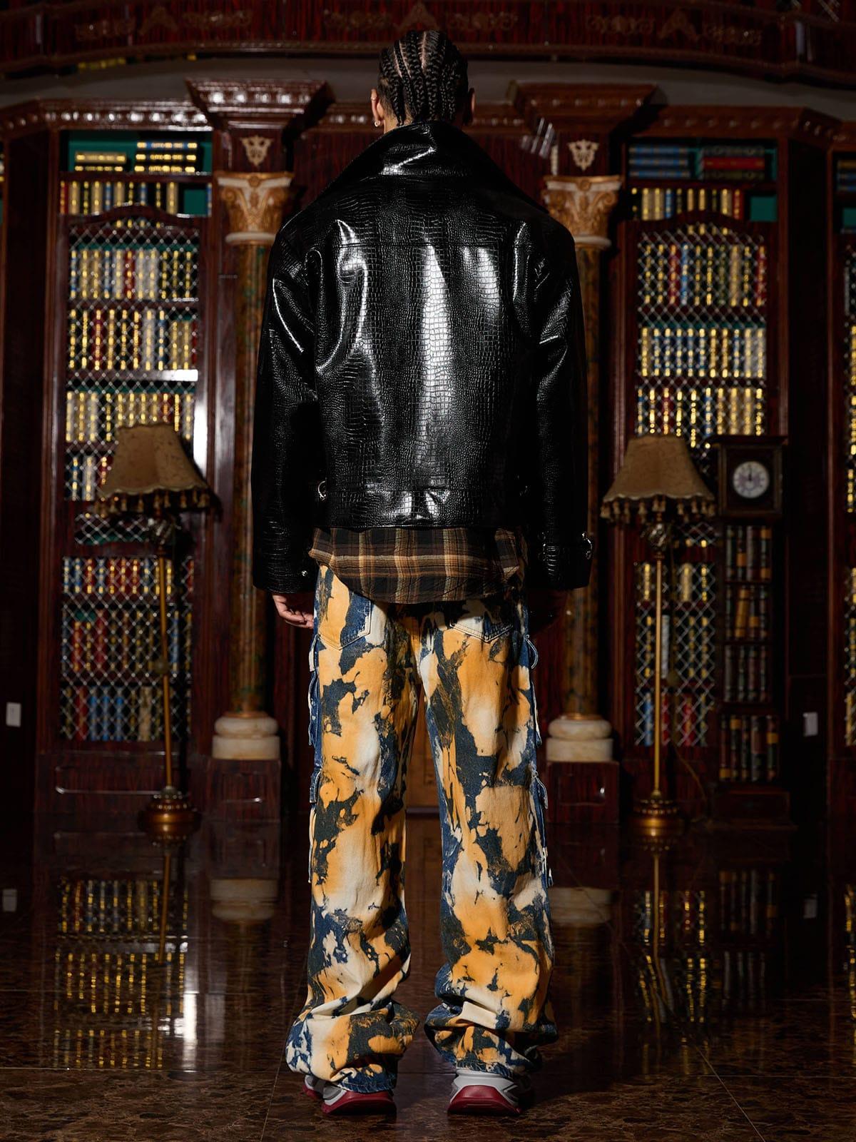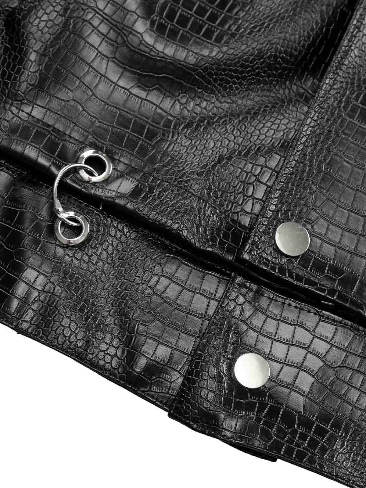 Ignite your style with a jacket that fuses sleek urban energy with a touch of rebellious flair. The rich black faux leather, embossed with a textured crocodile pattern, speaks boldly to the streets while the structured fit keeps you looking sharp in sizes M through 2XL. Silver grommet detailing and snap buttons add an industrial edge, making it a perfect match for your y2k outfits or any streetwear fashion ensemble. Layer it over a graphic tee or pair with distressed jeans to own the night. Ready to redefine your wardrobe? This piece is your ticket.