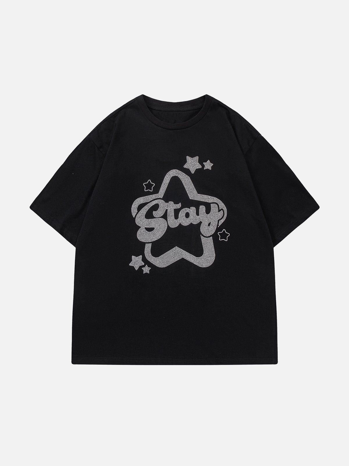 Stylish Concert Outfit: Solid Star Print Tee for Your Next Event