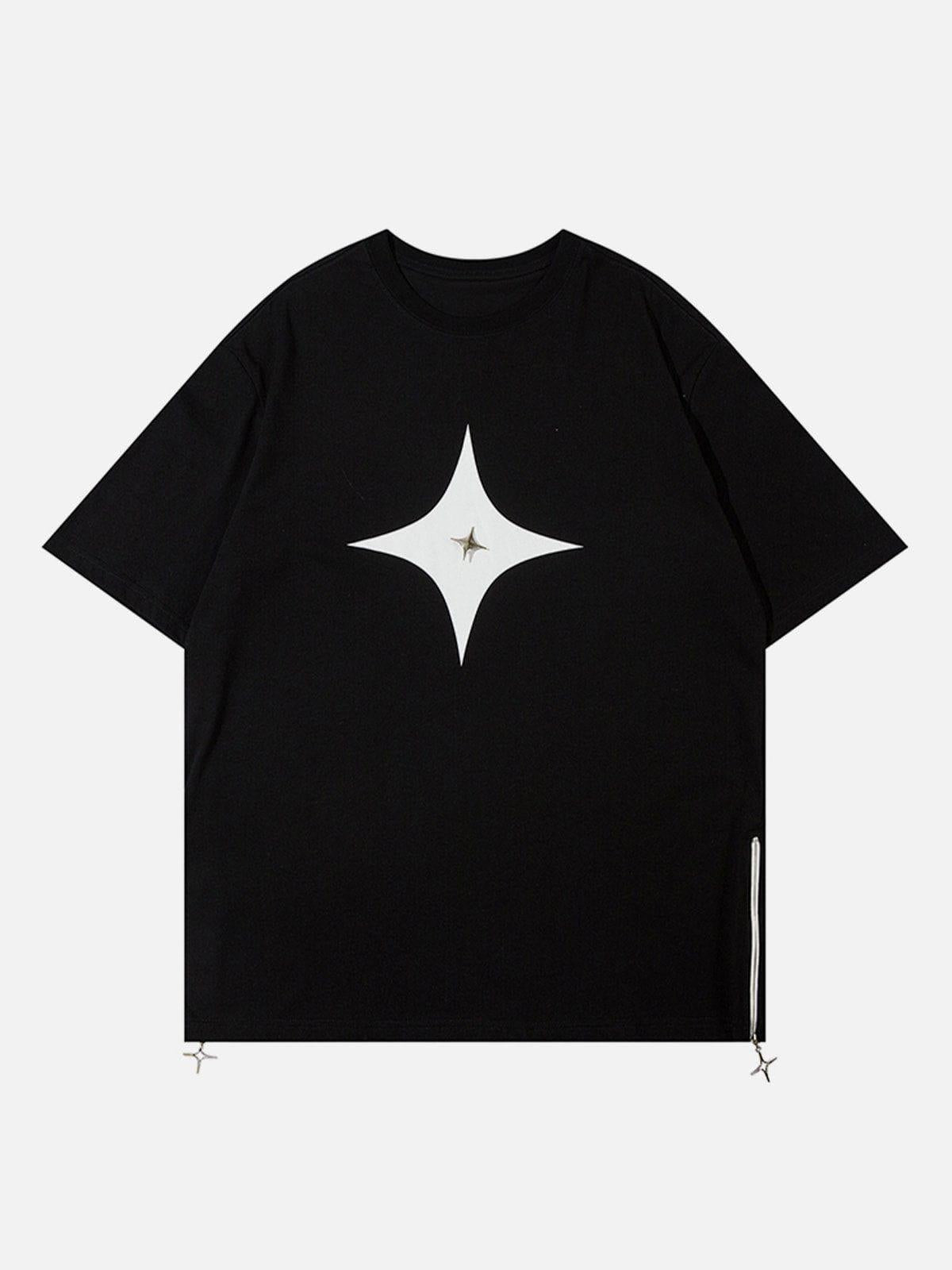 Own the streets with this bold tee that effortlessly combines minimalist design with standout edge. The striking white star graphic on the deep black fabric creates a dynamic contrast that screams urban sophistication. Crafted for comfort and style, its relaxed fit ensures you stay cool while the soft texture keeps you feeling fresh, whether you’re rocking it solo or layering for those cool summer nights. Available in sizes S to XL, this piece is your go-to for a versatile summer style that transitions from day to night. Choose between classic black or crisp white to match your vibe and make every outfit a masterpiece. Grab yours and redefine your summer fashion game.