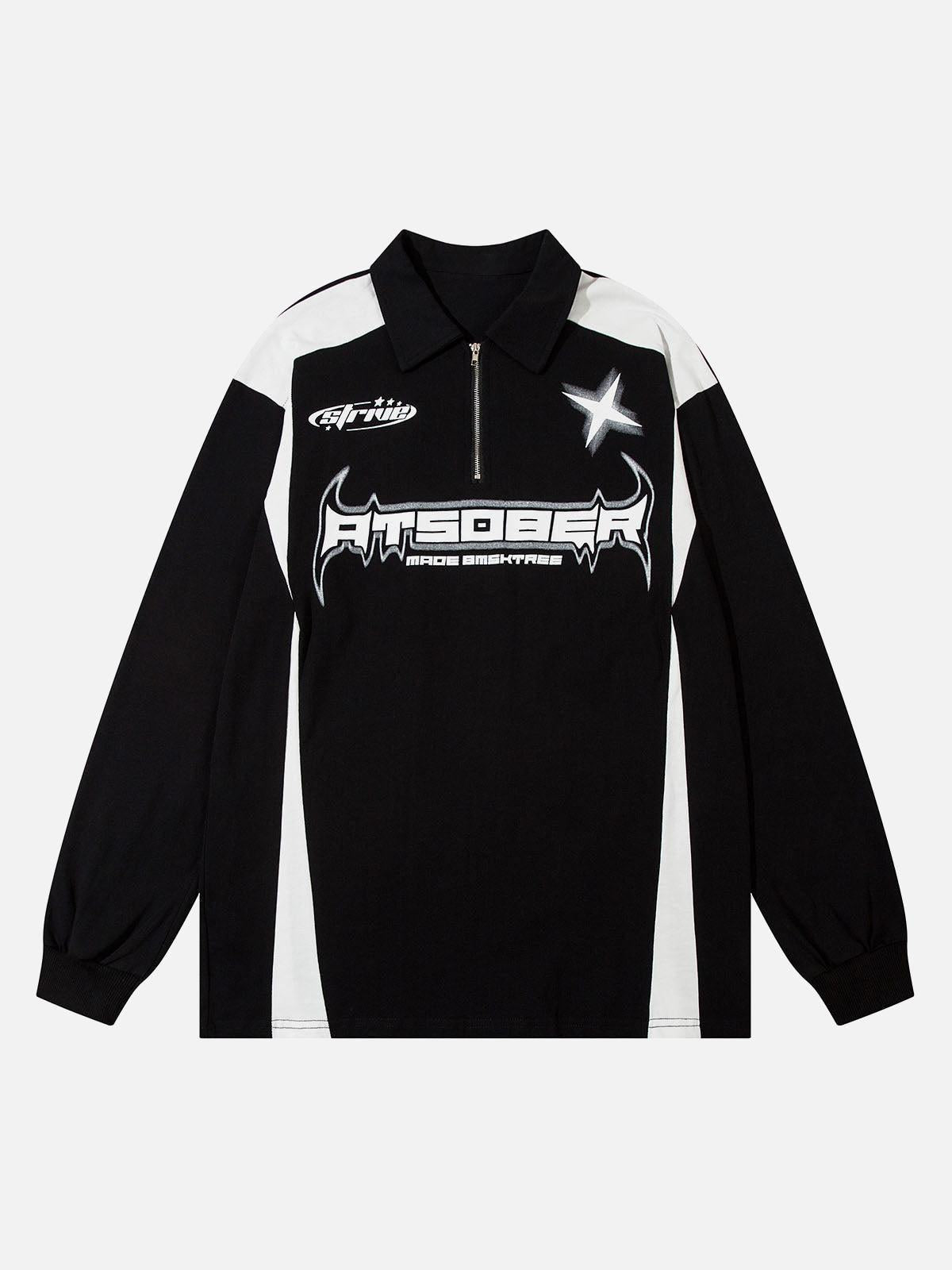 Break through the ordinary with a bold fusion of vintage flair and contemporary streetwear fashion. This standout piece boasts a striking black and white color palette, accentuated by graphic elements that scream attitude and edge. The zip-up collar and star detail add a retro nod, perfect for those channeling Y2K outfits while making a fresh statement. Designed for a relaxed fit, it’s available in sizes from M to 2XL, ensuring comfort and style for every urban explorer. Pair it with your favorite kicks and distressed jeans for effortless outfit ideas that turn heads. Own the streets with confidence.