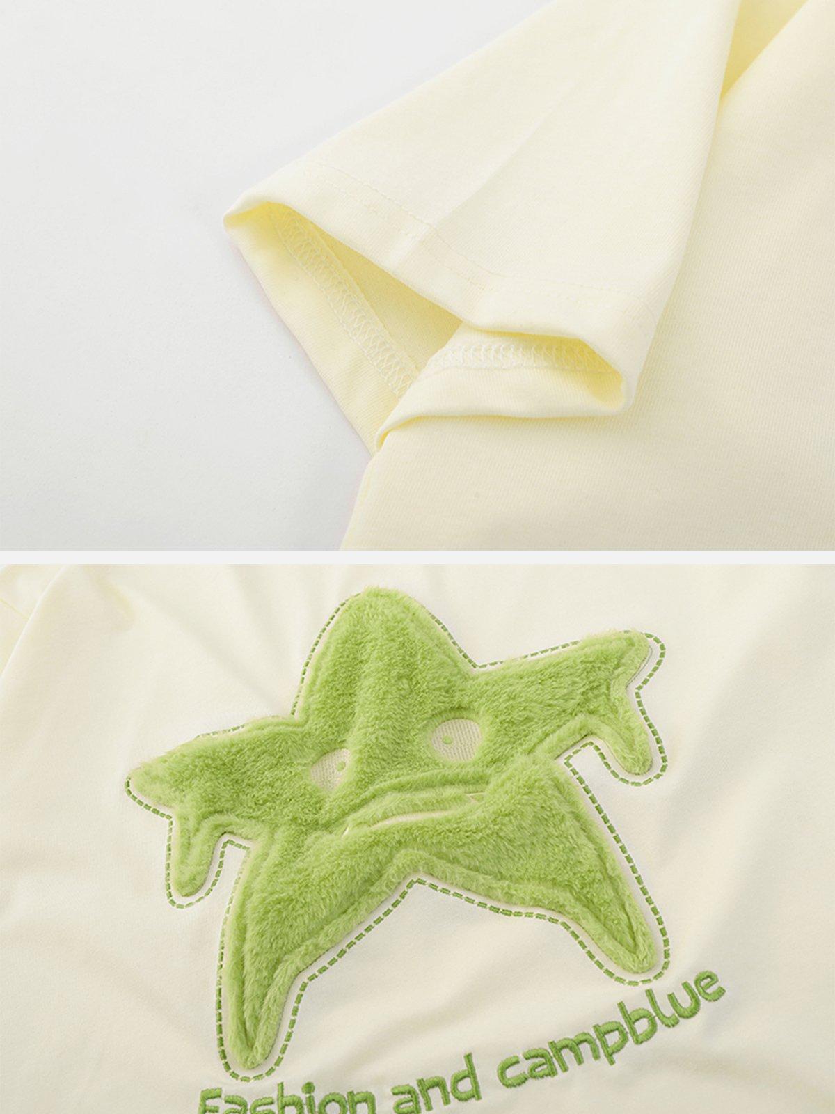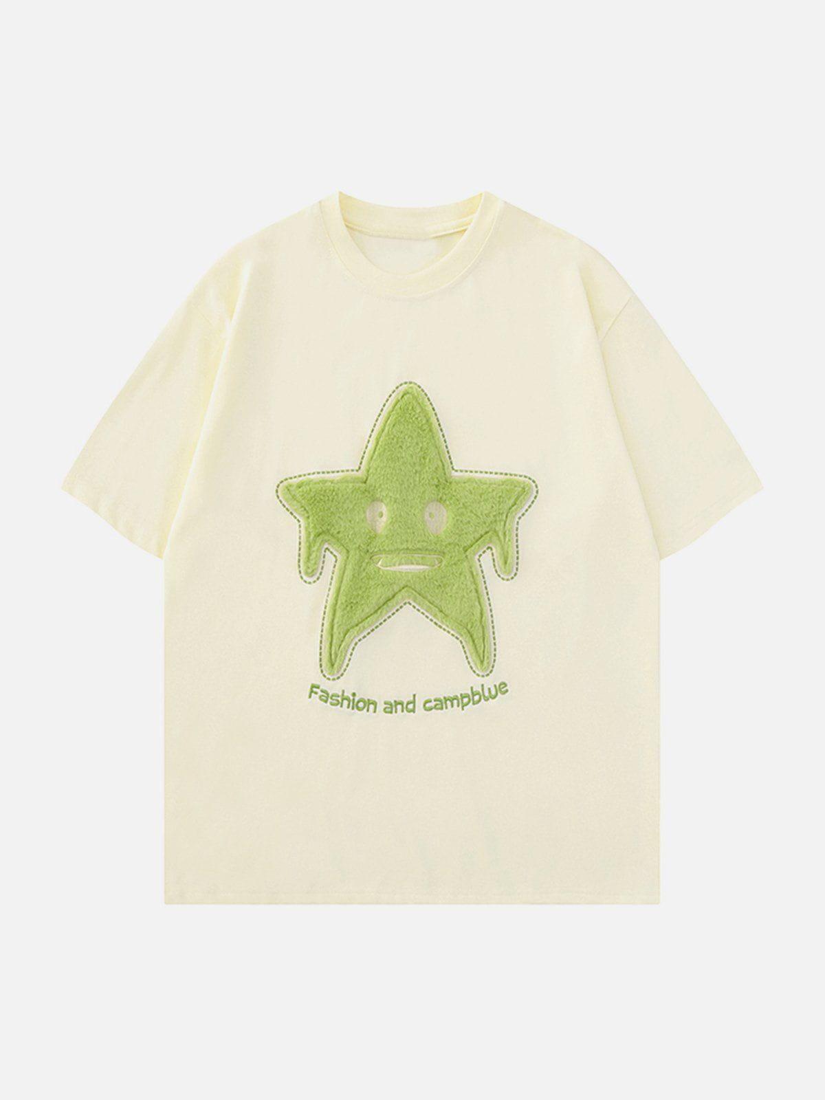 Push the boundaries of summer fashion with this standout tee, featuring a bold, plush green star appliqué that brings a playful edge to your look. The soft apricot hue sets a perfect backdrop for the quirky design, making it an easy match for any summer outfit. Available in sizes S, M, and L, this tee promises a relaxed fit that pairs effortlessly with your favorite streetwear pieces. Embrace the unique texture and let your style speak volumes—snag yours before it’s gone.