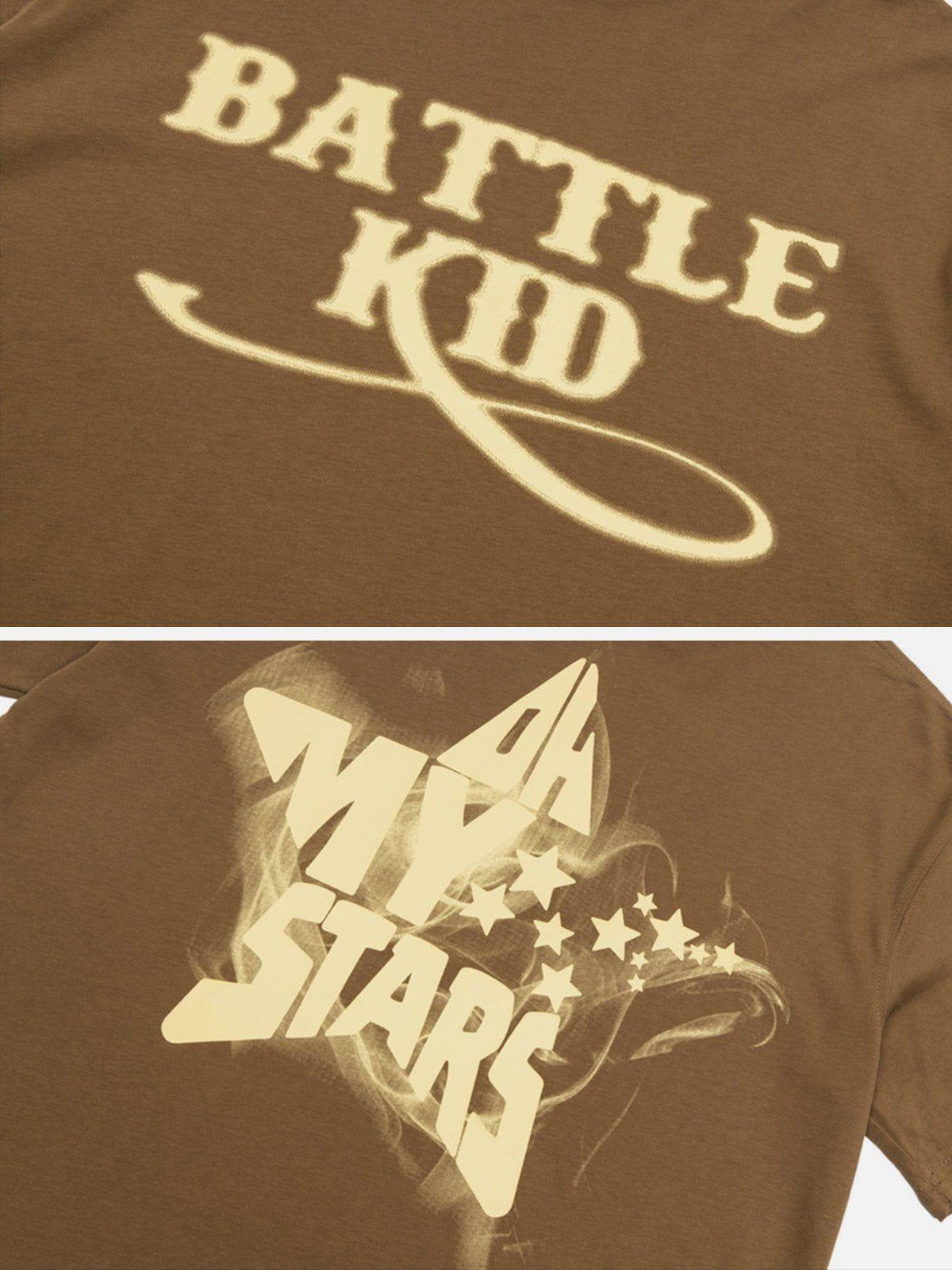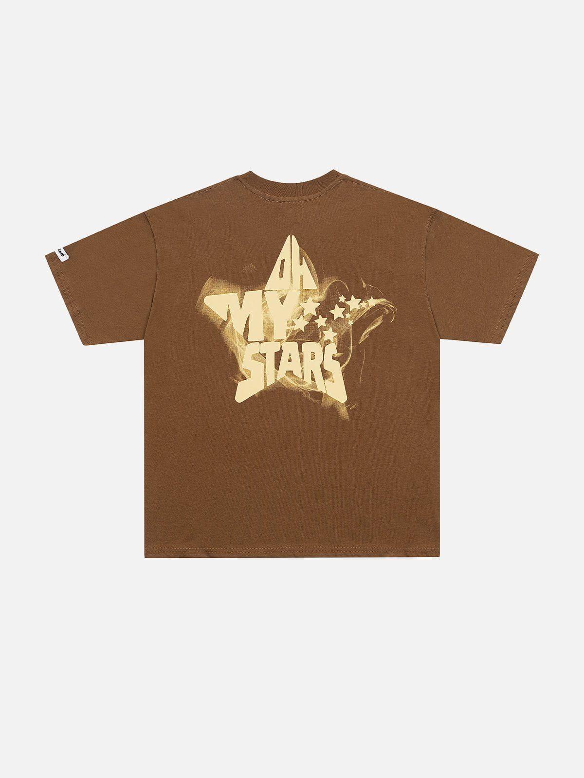 Embrace the urban rhythm with a tee that speaks volumes through its bold graphic design, featuring a stunning ‘Oh My Stars’ motif that captures the essence of street style. The rich brown backdrop, complemented by subtle black and light gray options, offers a versatile canvas that pairs effortlessly with any summer outfit. Crafted for those who appreciate a relaxed fit, this tee is available in sizes S, M, and L, making it a staple for any wardrobe. Pair it with distressed denim or your favorite joggers for a look that’s as comfortable as it is stylish. Ready to redefine your summer fashion? Don’t miss out on this essential piece.