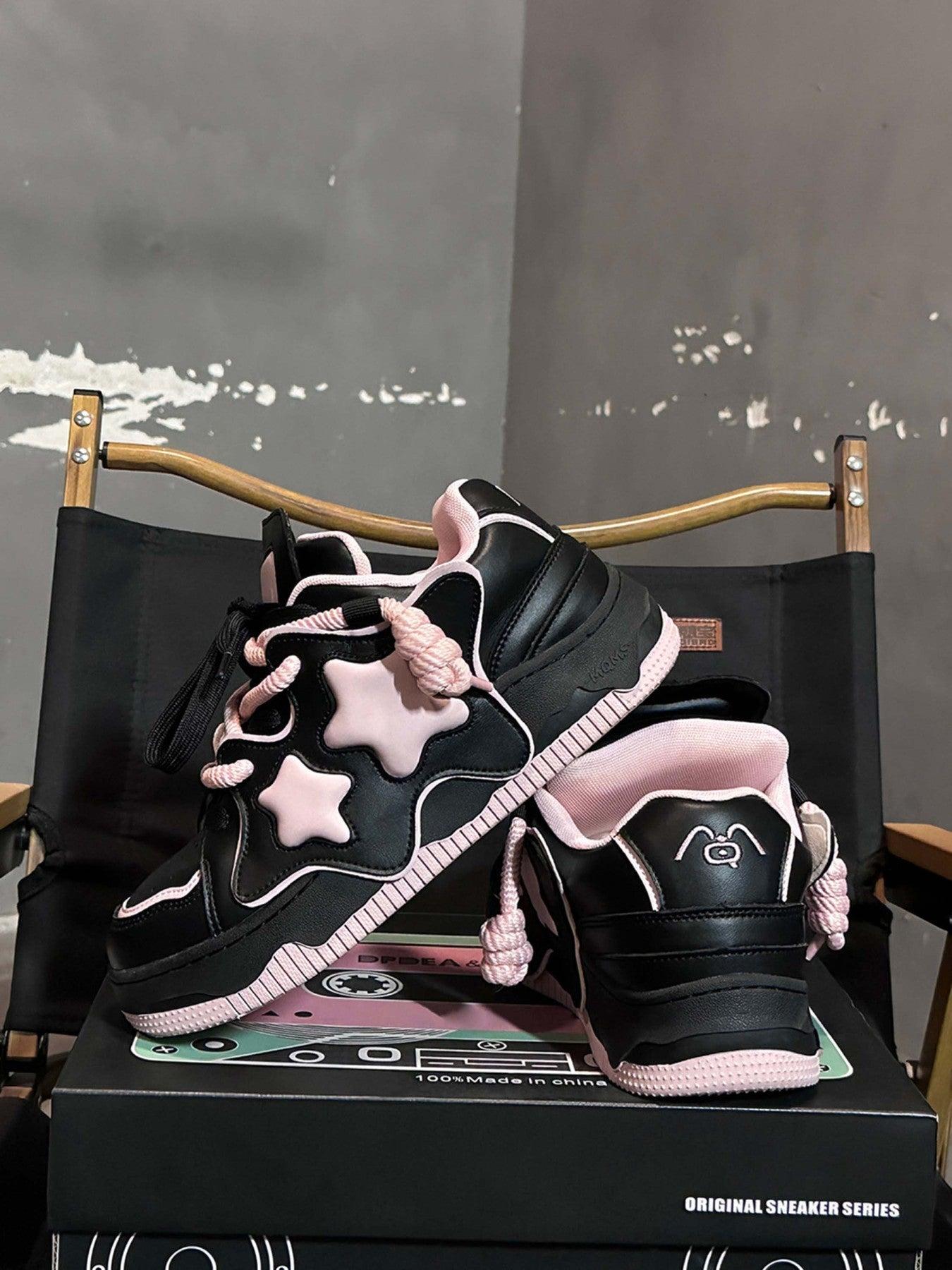 Unleash your inner star with these bold kicks, where edgy black meets playful pink in a cosmic collision of style. Sleek leather contrasts with plush star patches, creating a tactile experience that’s as striking as it is comfortable. Designed to fit every stride, these sneakers offer a range of sizes from 35 to 44, ensuring a perfect match for your unique flair. Pair them with your favorite y2k outfits for a throwback vibe or mix them into your streetwear fashion for an unexpected pop of color. Ready to redefine your sneaker game? Pull these on and step out with confidence.