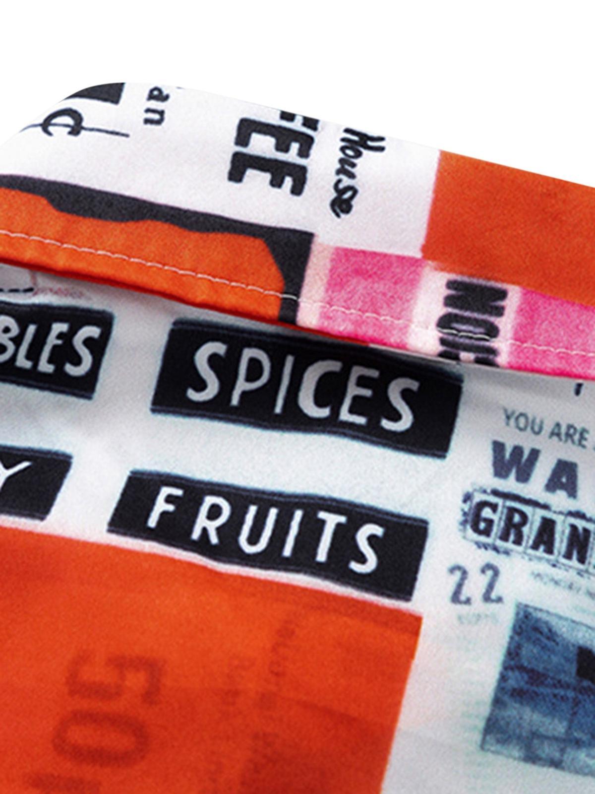 Break free from the mundane and dive into the vibrant chaos of this graphic short-sleeve shirt, where every patchwork of bold colors and eclectic text tells its own story. The crisp white backdrop sets the stage for a riotous collage of oranges, blues, and blacks, each element promising a unique twist on urban storytelling. Designed for those who dare to mix and match, this shirt offers a relaxed fit that’s perfect for layering over a tee or rocking solo. Available in versatile sizes from M to 2XL, it’s your canvas for crafting unforgettable streetwear fashion. Ready to turn heads wherever you go?
