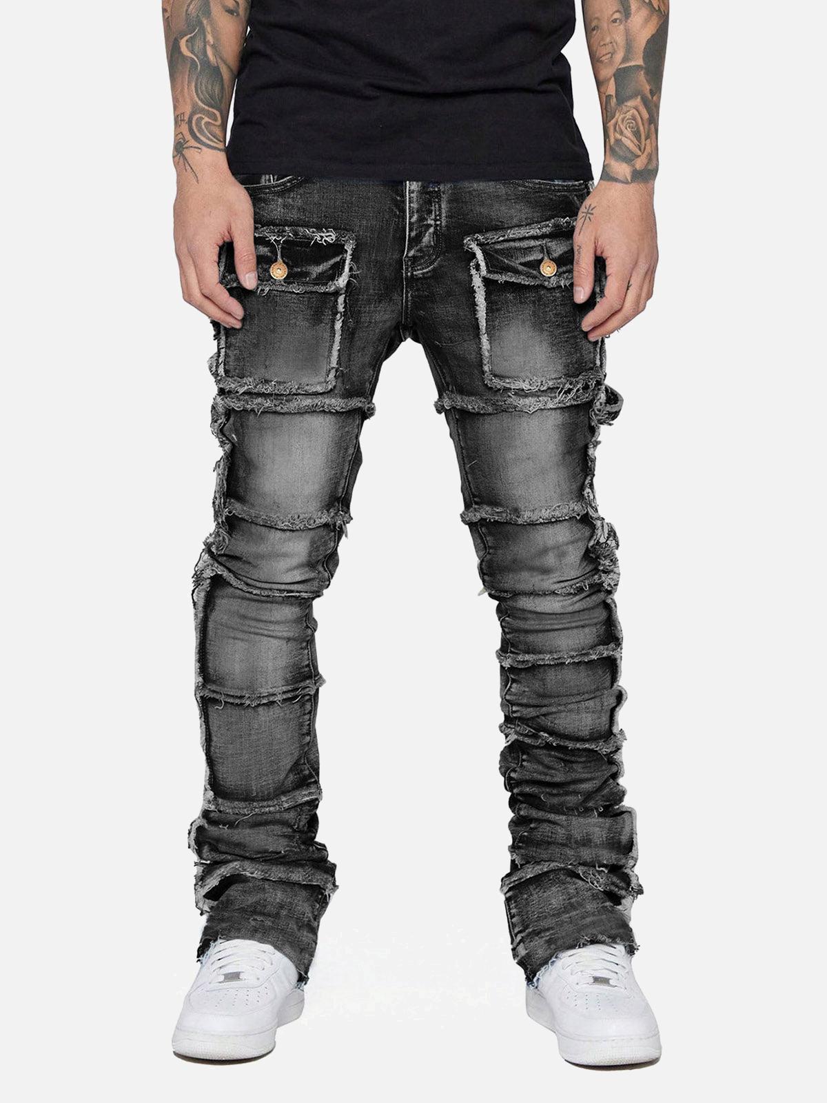 Break the mold with jeans that redefine streetwear fashion through bold, distressed detailing and rugged textures. These fierce gray jeans, also available in striking blue and classic black, offer a slim fit that hugs your silhouette while providing room to move. With unique frayed edges and oversized pockets, pair them effortlessly with your favorite kicks or a sharp jacket for versatile outfit ideas. Available in sizes S through 2XL, these jeans promise comfort and style for every urban adventure. Embrace the edge and let your look speak volumes.
