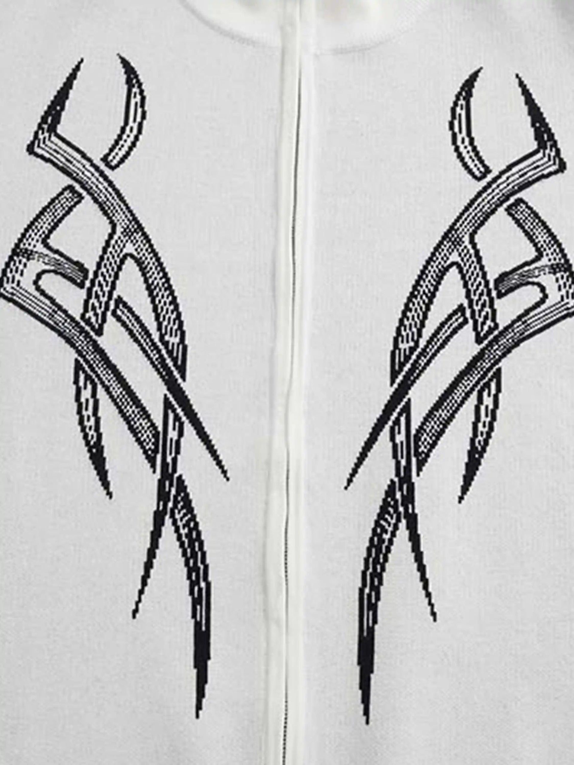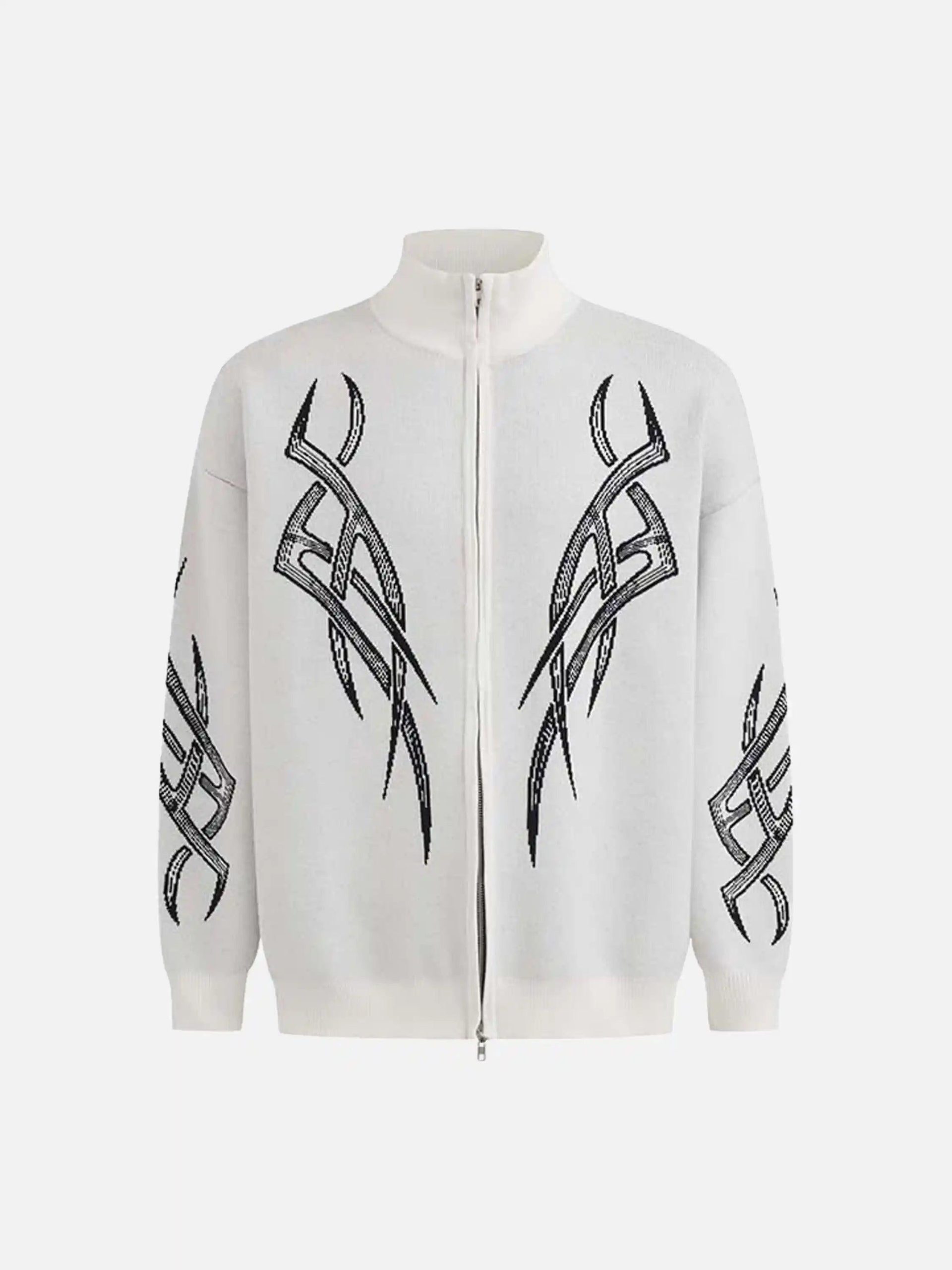 Break the mold with this striking zip-up jacket, where bold tribal patterns clash effortlessly against a sleek black canvas, capturing the essence of urban streetwear fashion. The textured designs weave across the arms and torso, creating a dynamic visual impact that sets you apart from the crowd. Whether you choose the classic black or crisp white option, the medium, large, and extra-large sizes ensure a comfortable fit for any style adventure. Pair it with your favorite jeans or joggers for a look that’s both fearless and refined. Ready to redefine your wardrobe with some edgy outfit inspo?