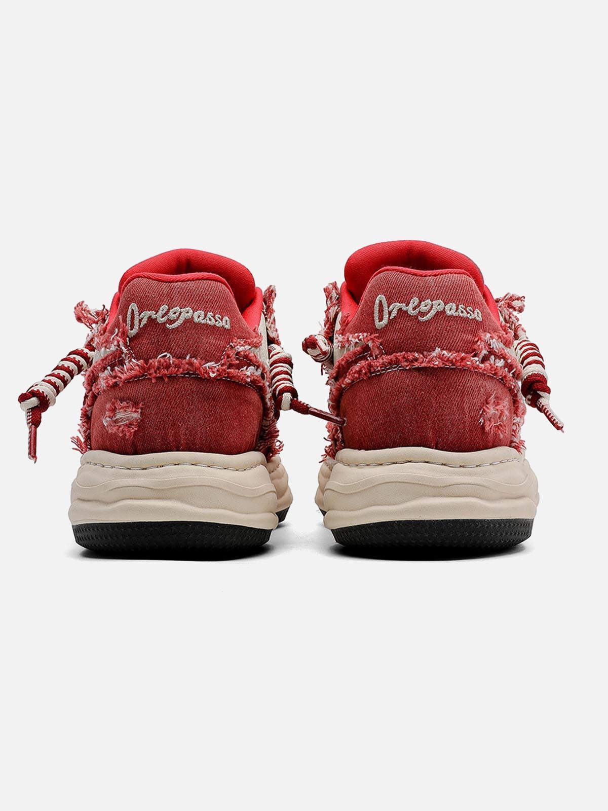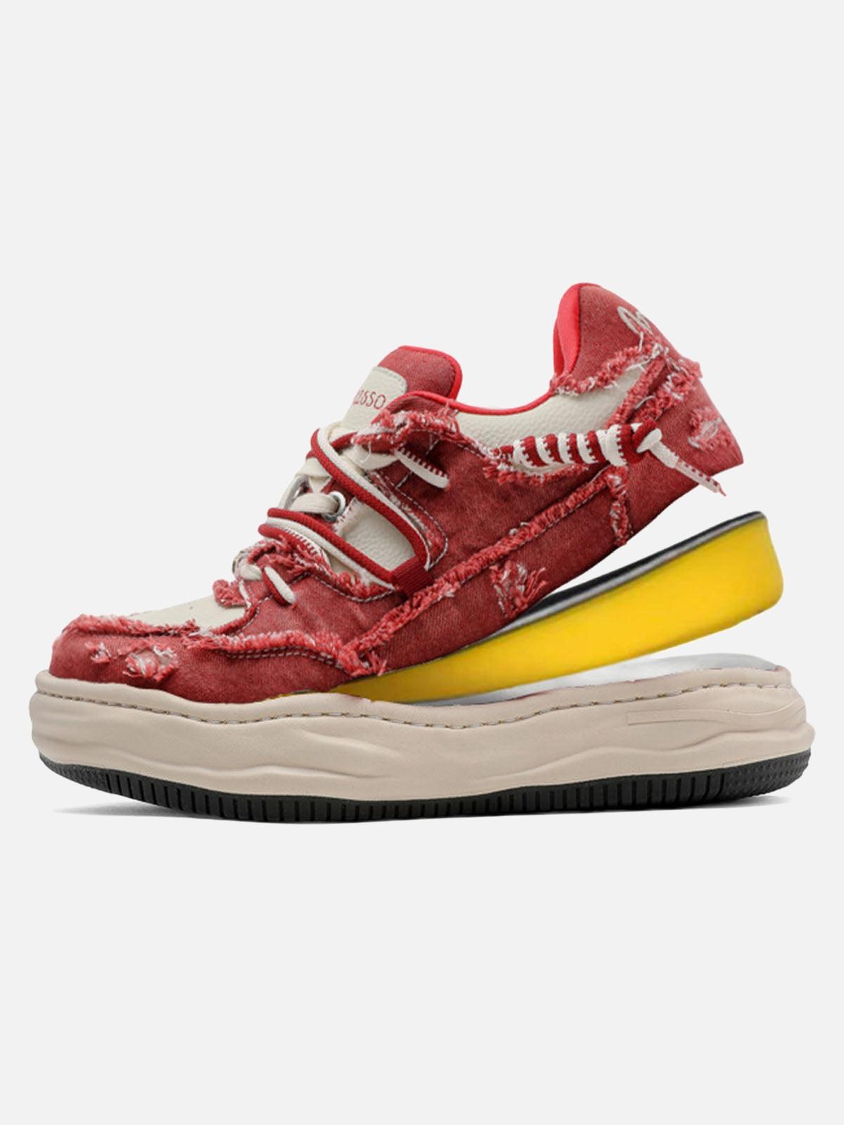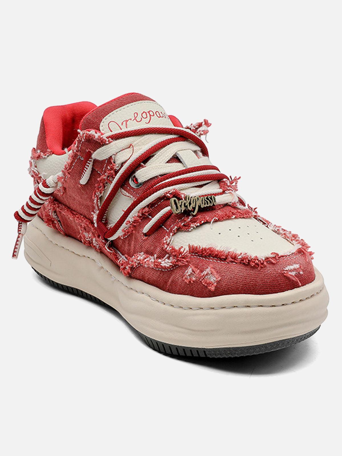 Step into the urban jungle with TALISHKO Washed Denim Low-Top Raw Edge Sneakers. Perfect for spring and fall, these sneakers redefine casual outings and street style with their distressed upper and bold color contrast. The layered sole design not only offers comfort for all-day wear but also adds a stylish 7.0cm height boost, ensuring you stand out with an edgy vibe. Ready to complement any streetwear look, these sneakers are your go-to for everyday wear.