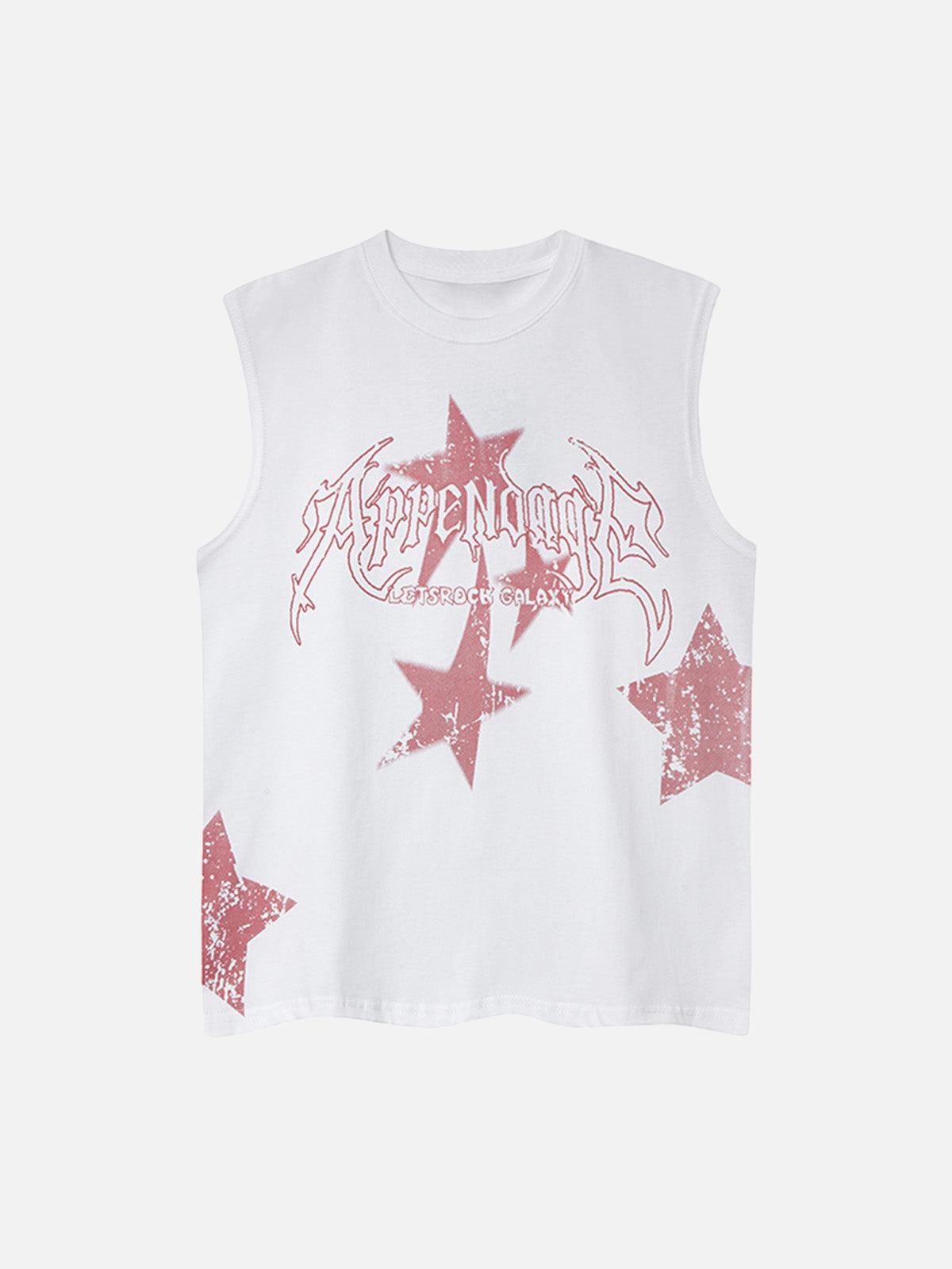 Turn heads with this sleeveless stunner, where bold star graphics collide with a distressed black canvas for an unapologetically urban vibe. The edgy, raw hem and relaxed fit make it an essential piece for layering over long sleeves or pairing with your favorite denim for effortless streetwear fashion. Available in versatile shades of black, gray, and white, and ranging from S to 2XL, it’s designed for those who refuse to blend in. Embrace your individuality with this piece that’s all about making your everyday look anything but ordinary.