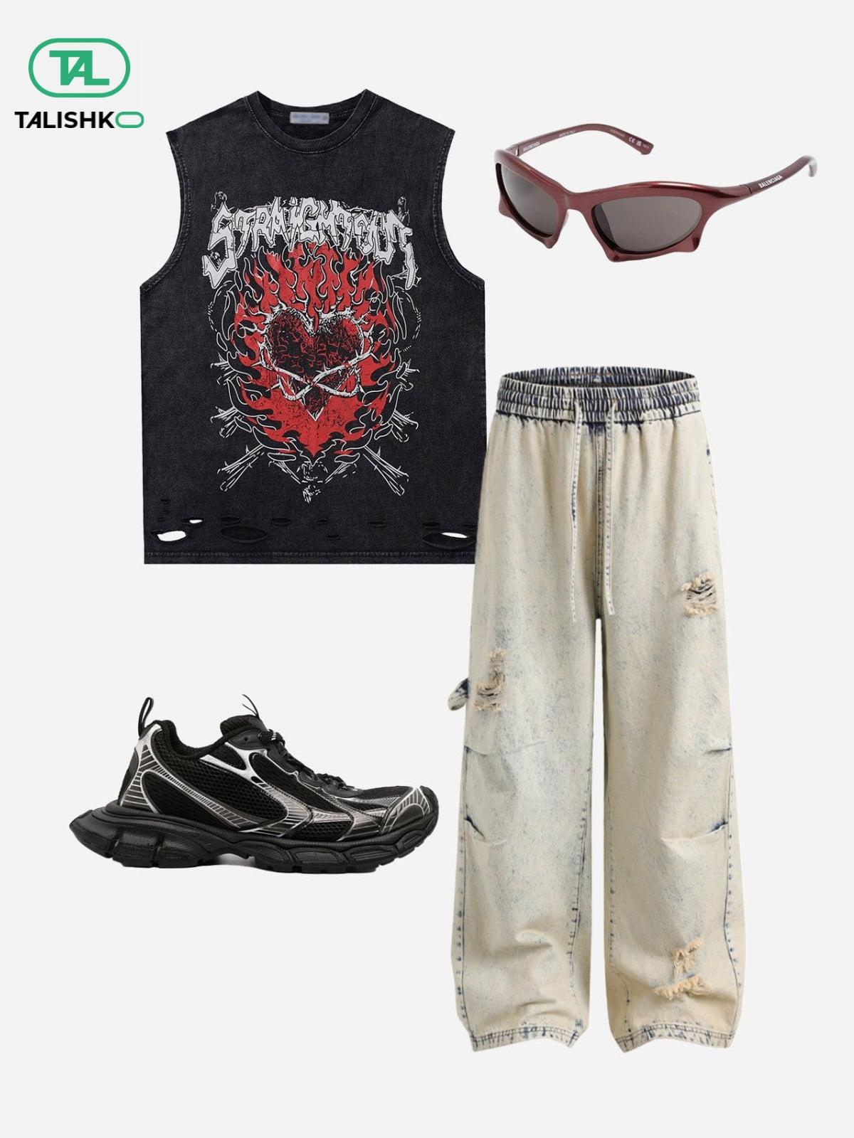 Stylish Concert Outfit: Yellow Mud Washed Loose Jeans for Your Next Event