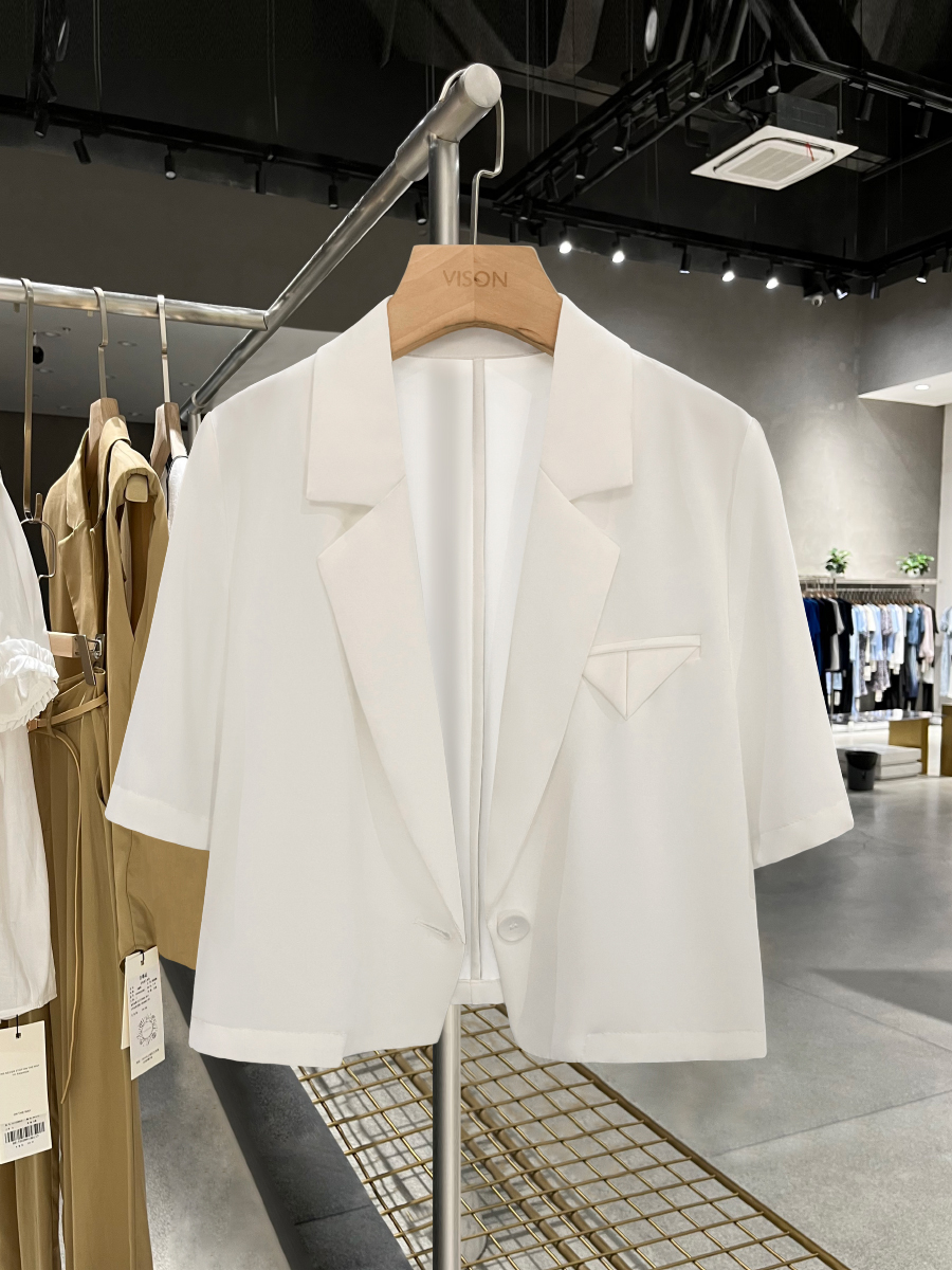 Elevate your summer wardrobe with our 2025 Summer Thin White Loose Short Sleeve Blazer Jacket for Women. This casual chic short suit top is designed for a relaxed fit, allowing you to stay stylish and comfortable all day long. Made from lightweight fabric, it’s perfect for layering over your favorite outfits, adding a touch of trendy sophistication to any look. Don’t miss out on this essential piece for effortless summer style—add it to your cart today!