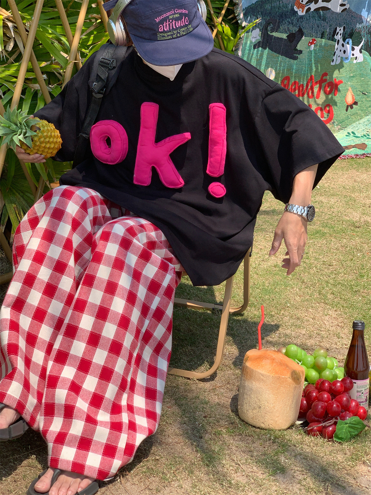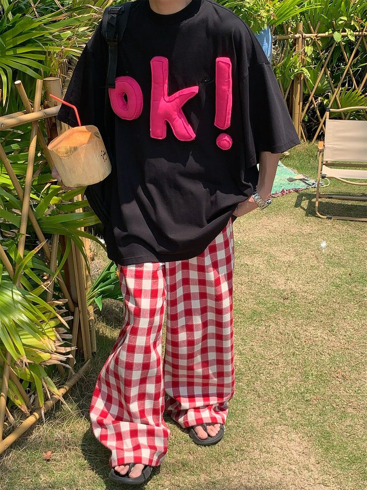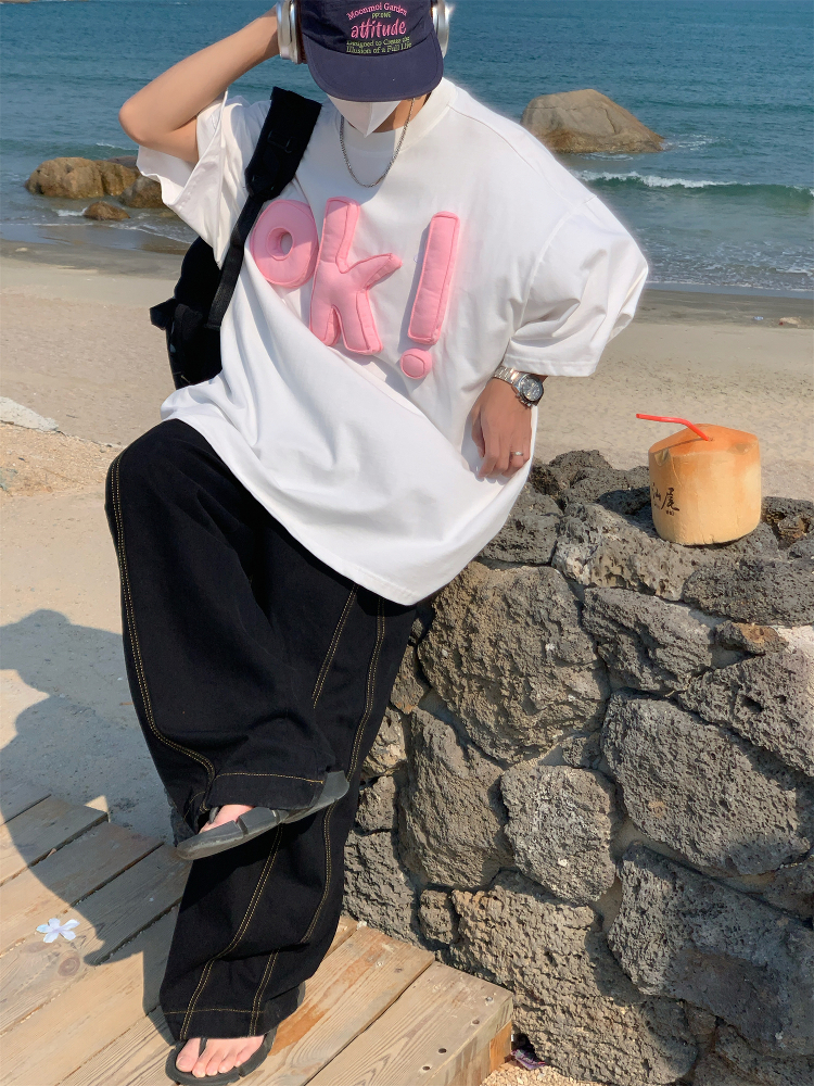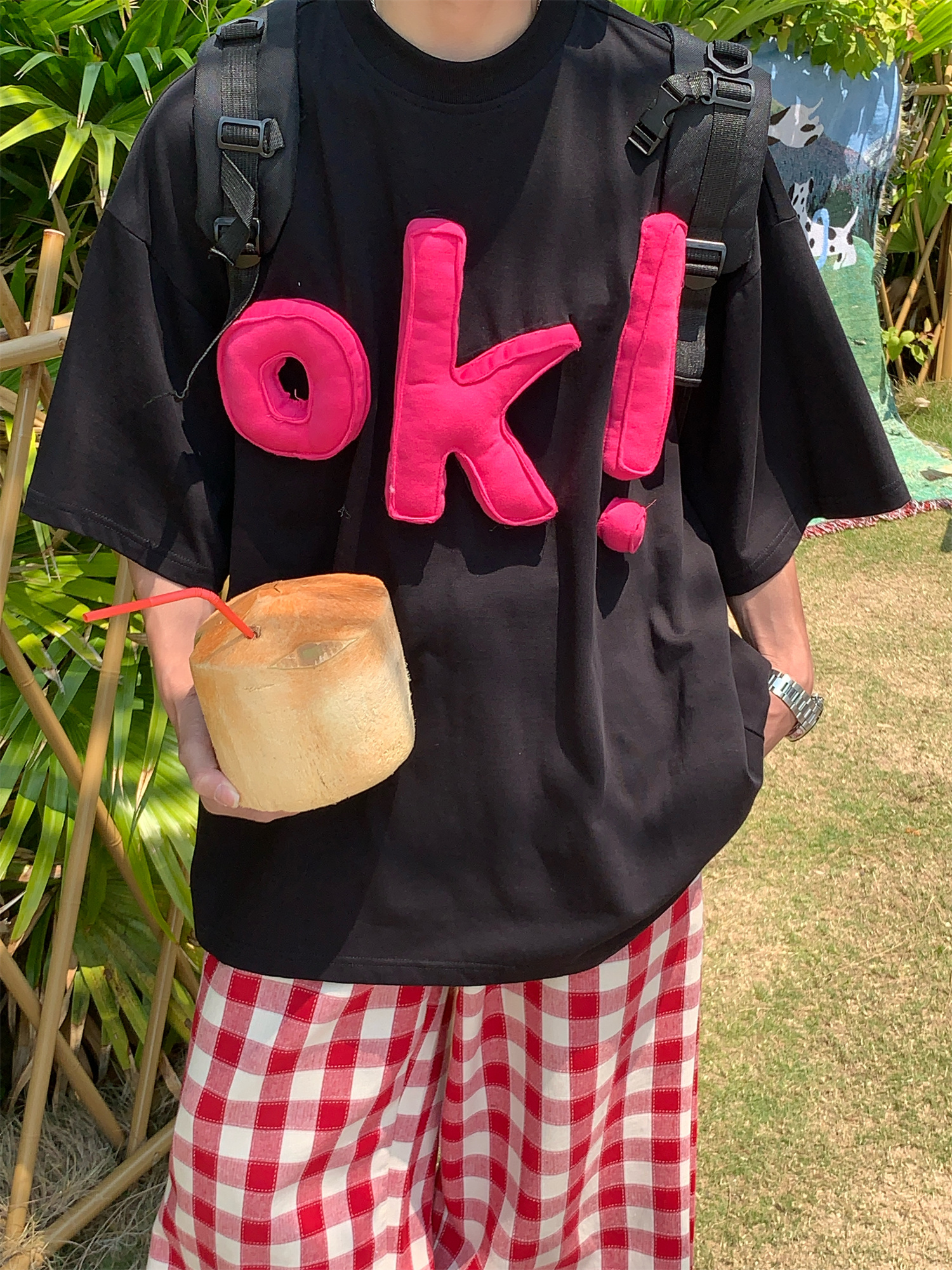 Concert Outfit 3D OK Letter Printed Short Sleeve T- shirt Men, Women, Casual Summer Loose Fit Vintage Tee