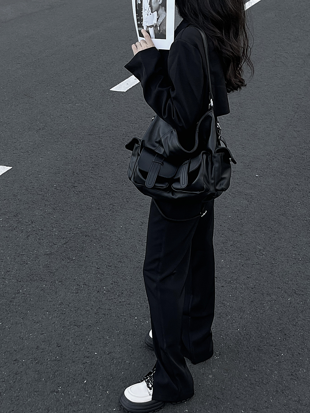 Elevate your style with our American Retro Black Slouchy Motorcycle Crossbody Bag, designed for the trendy girl on the go. This large capacity tote combines a chic Y2K aesthetic with practical functionality, making it perfect for everyday use or a night out. With its slouchy silhouette and durable materials, this bag not only enhances your outfit but also keeps your essentials organized. Don’t miss out on this must-have accessory—add it to your cart today and embrace effortless style!